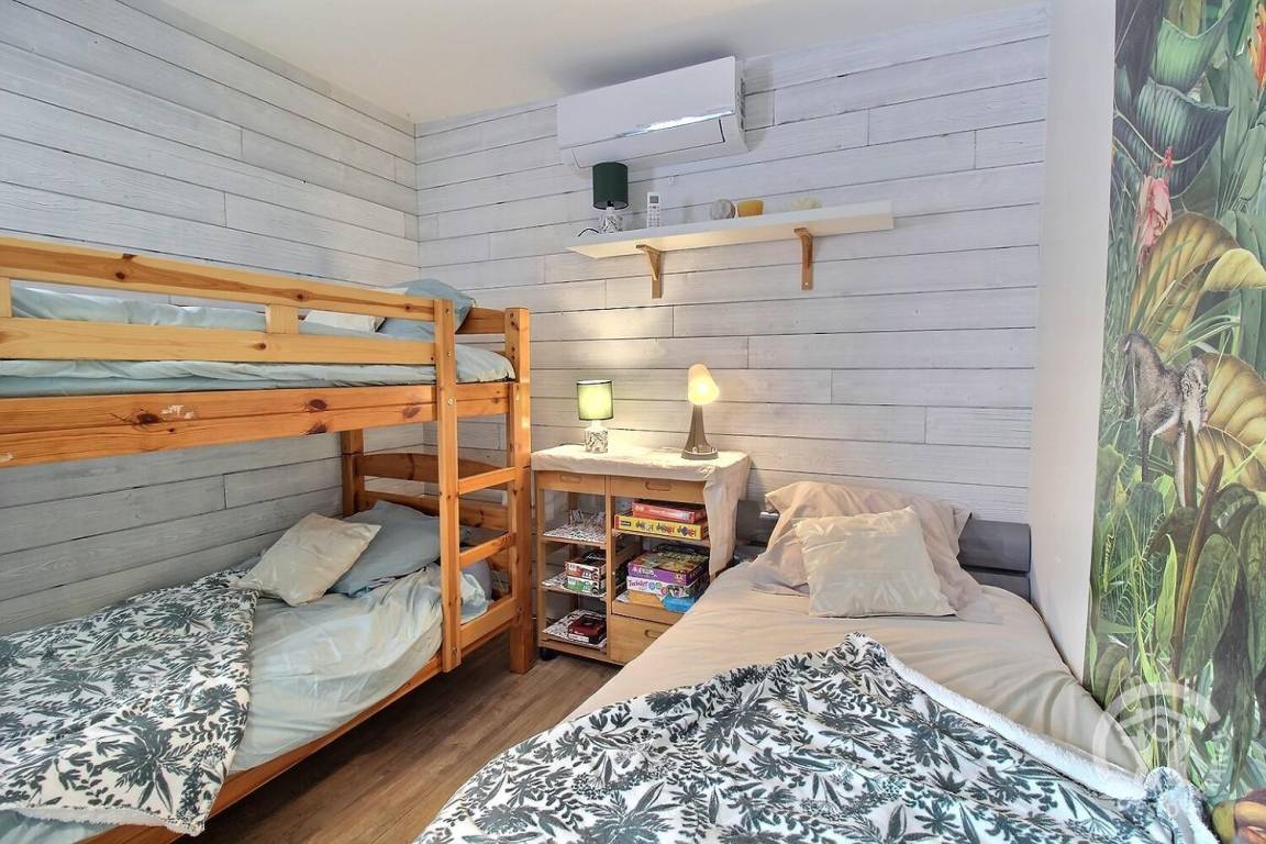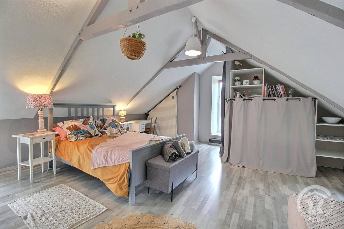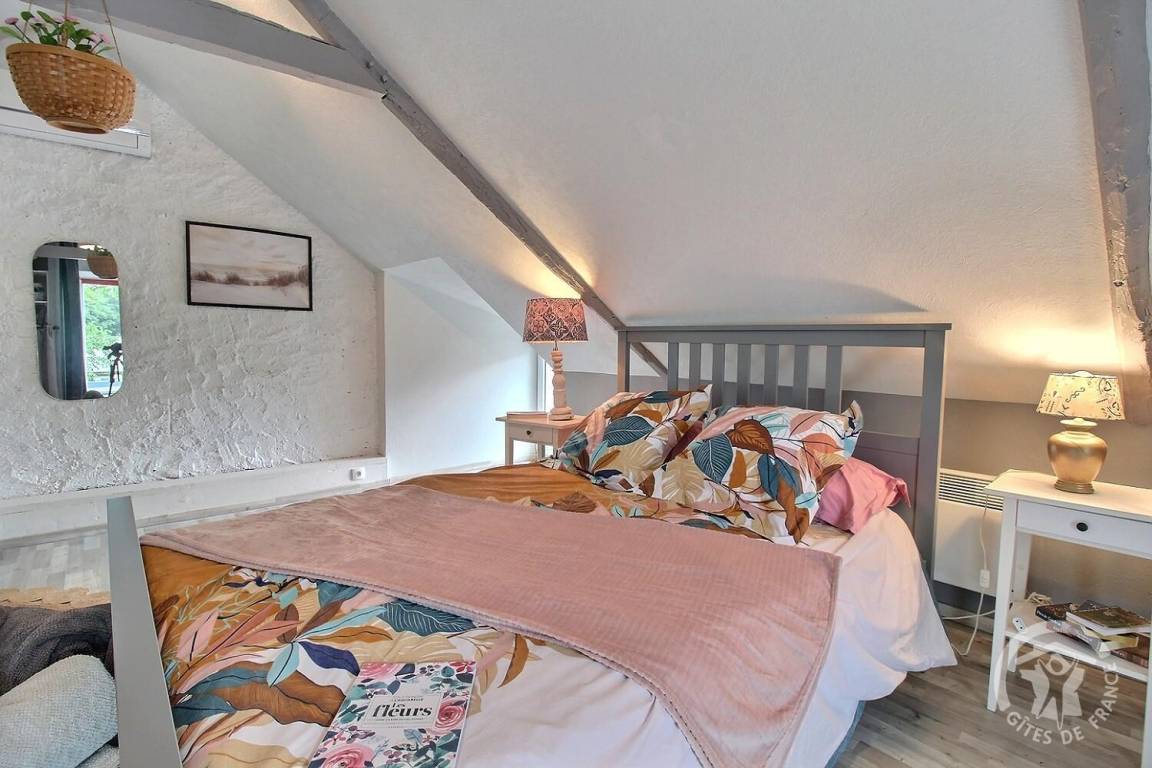 - Im Obergeschoss: ein Schlafzimmer (durch einen Vorhang verschlossen) mit 1 140x200-Bett.