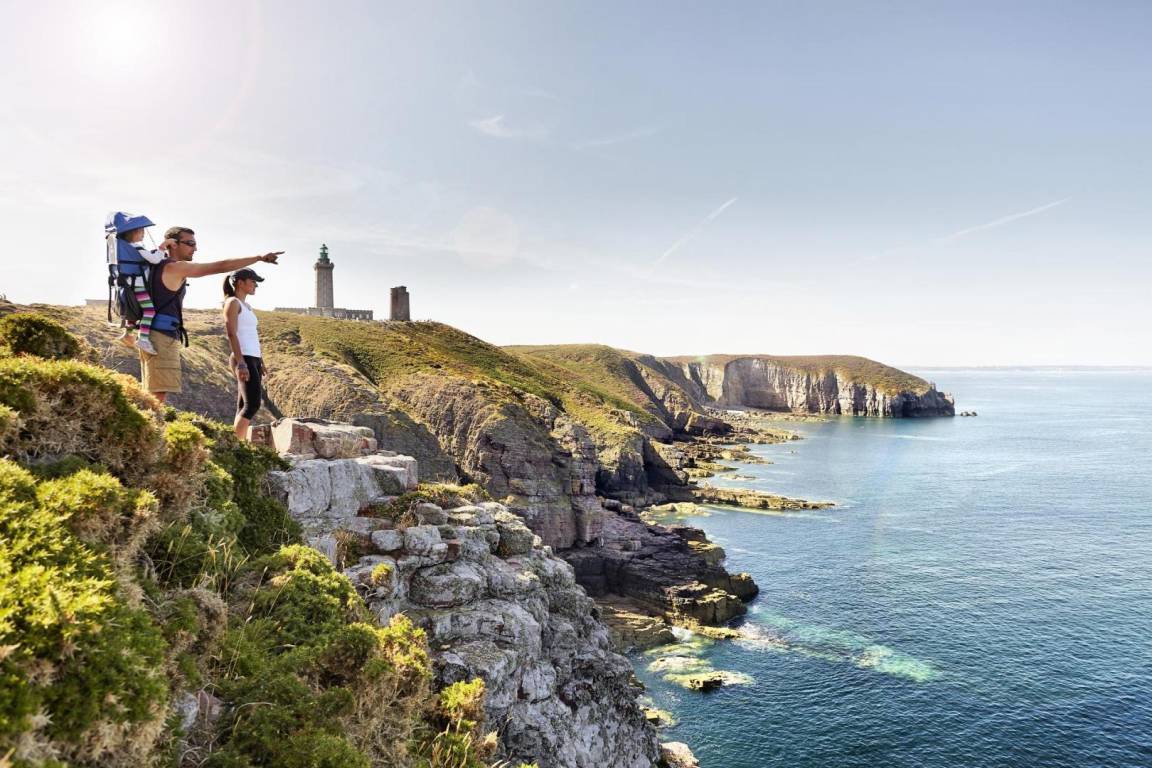 Wanderfreunde folgen dem GR34 entlang wilder Strände und steiler Klippen.