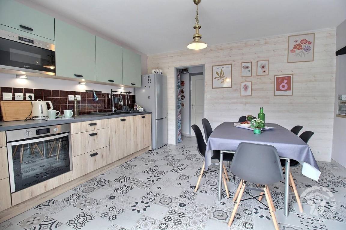 - Im Erdgeschoss: Küche, Wohnzimmer, Wohnzimmer, ein Badezimmer mit Dusche, WC und über eine Stufe erreichbar 2 Schlafzimmer (1 Bett 160x200, 3 Betten 90x190)