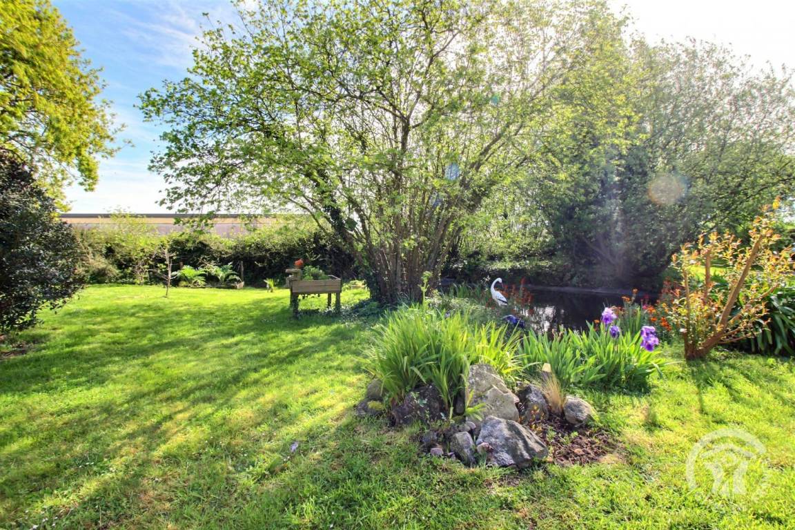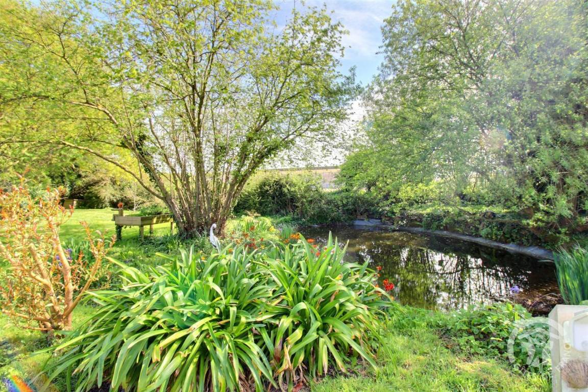 Außenbereich: private Terrasse von 20 m², Gemeinschaftsgrundstück von 120 m² mit kleinem Zierteich. Parkplatz am Eingang des Grundstücks.