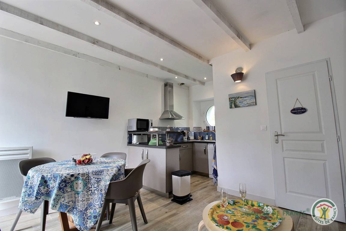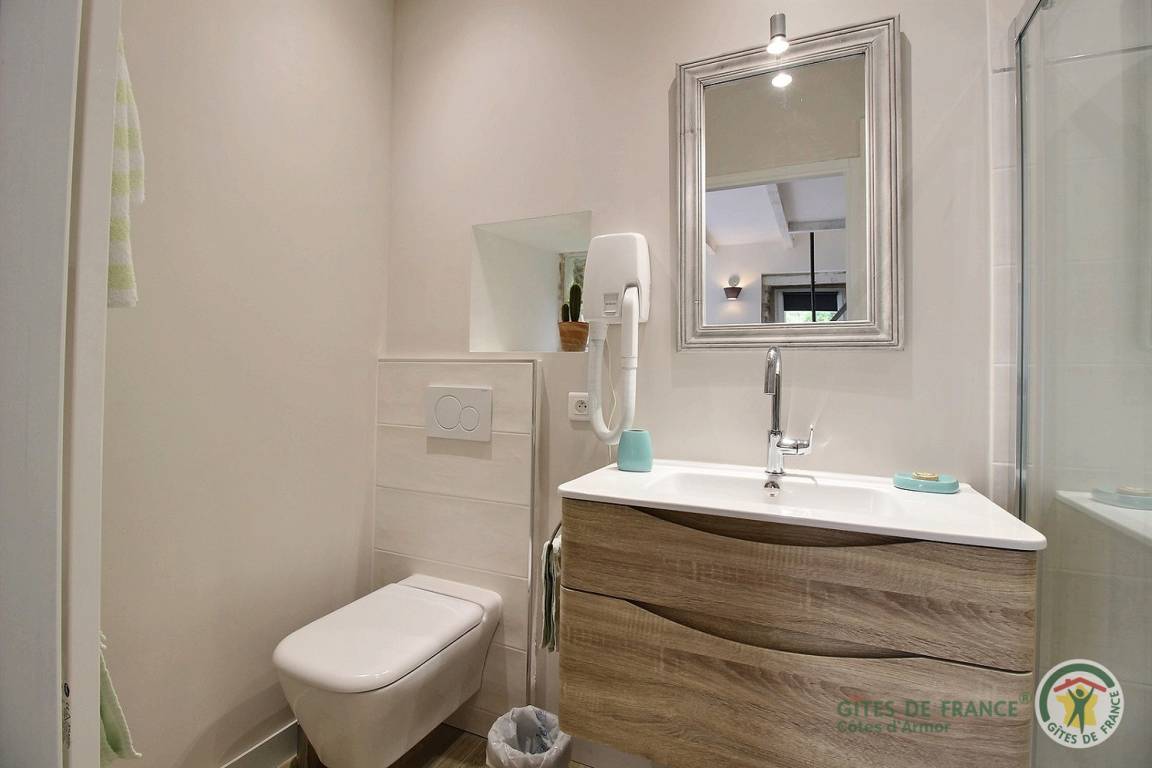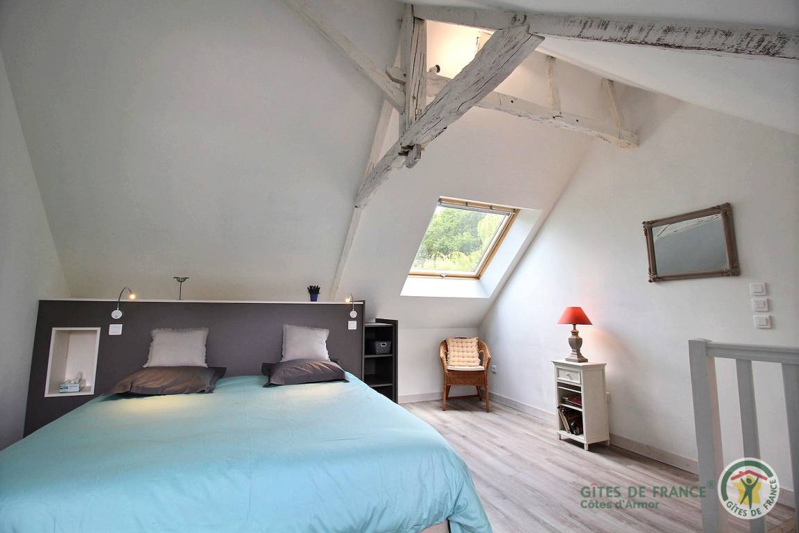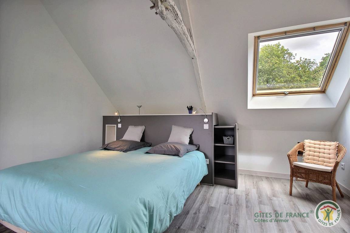„The owners who live next door were helpful but not intrusive. The garden setting of the property was calming, the bedroom roomy with high ceiling - torch needed when going downstairs to the loo at night - facilities for laundry in lean-to good. Gorgeous beach at Sables d’Or 15 mins drive away, lots of lovely coastal and local town/village experiences. Living/bathroom area downstairs compact, comfortable.“