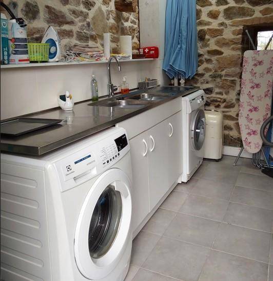 Waschküche mit eigener Waschmaschine, gemeinsamem Wäschetrockner und Gefrierschrank (2 reservierte Schubladen) im Giebel des Bauernhauses.