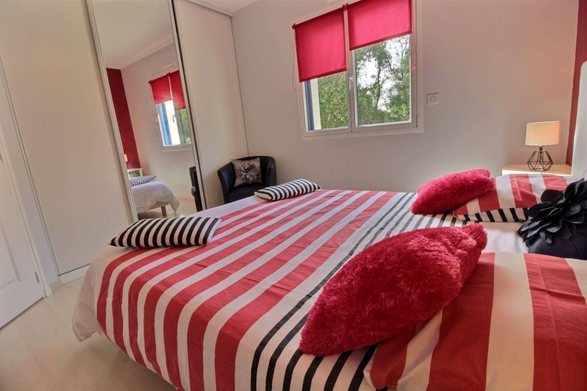 Ihr Ferienhaus umfasst im Erdgeschoss: hübsche Einbauküche Öffnung auf ein angenehmes, sehr helles Wohnzimmer mit modernen Möbeln, 1 Schlafzimmer (1 Bett 160x200), mit angrenzendem Badezimmer (Dusche), separatem WC. Etage: Mezzanine-Lounge und 2 Schlafzimmer (2 Betten 80x190) (1 Bett 140x190), Badezimmer mit Badewanne, separates WC. Grundstück von 600 m², mit Terrasse von 45 m².
