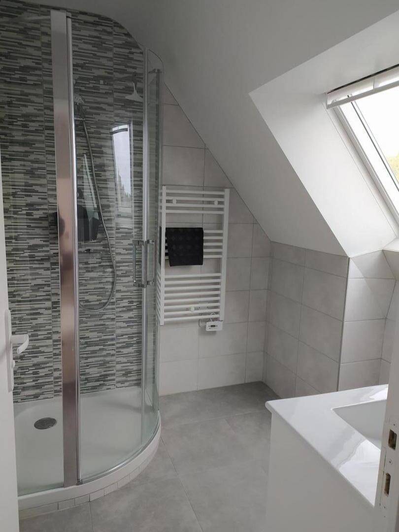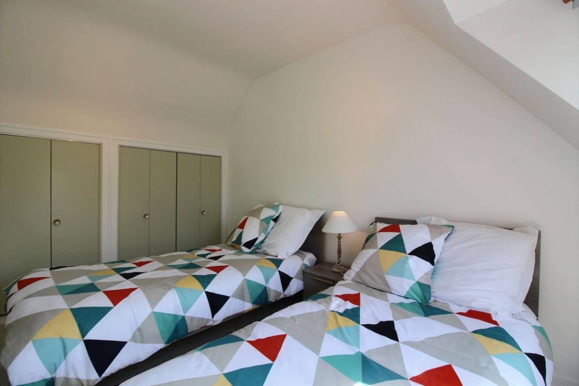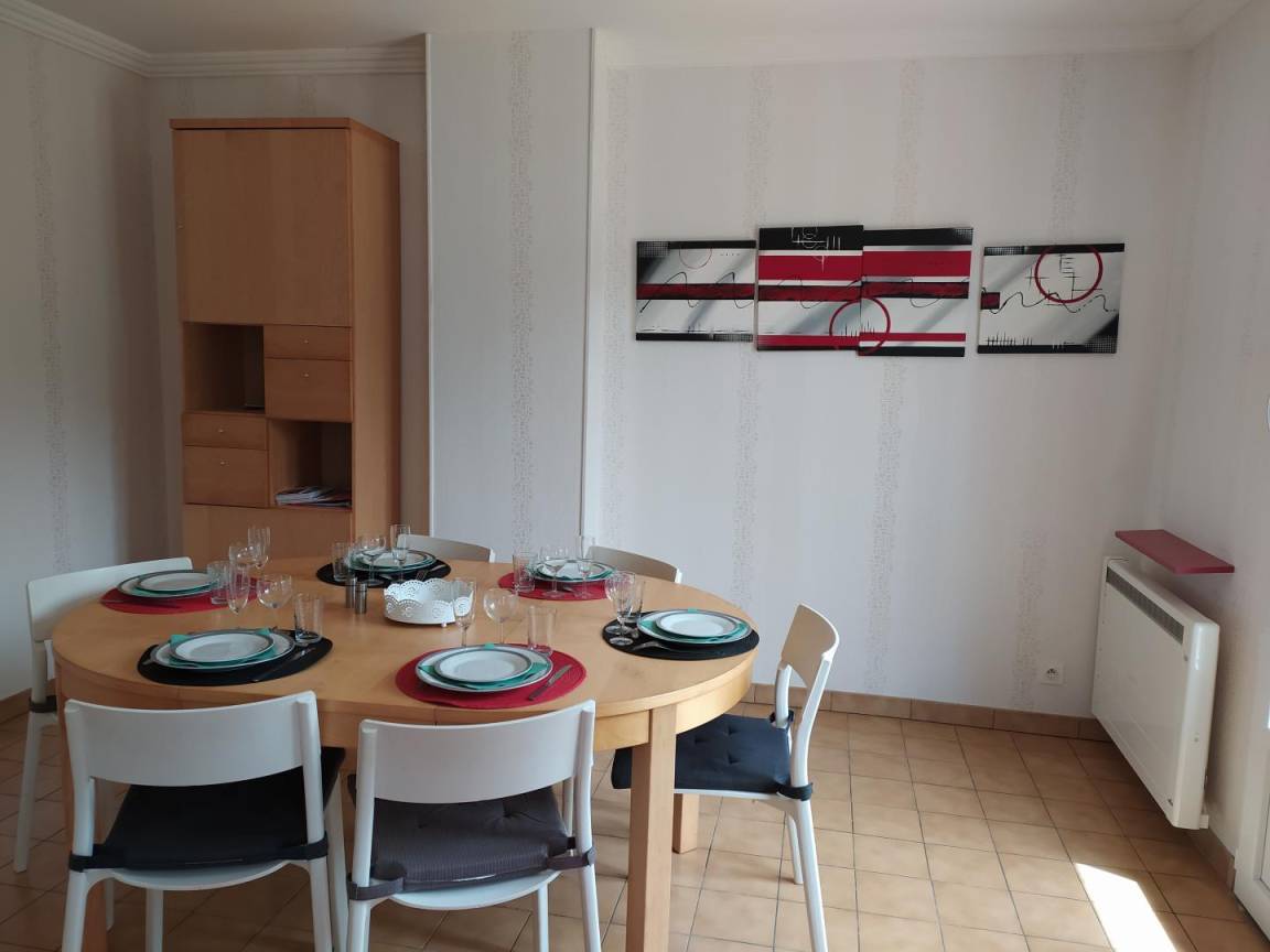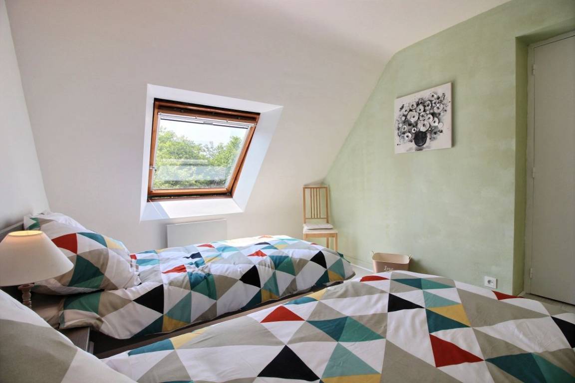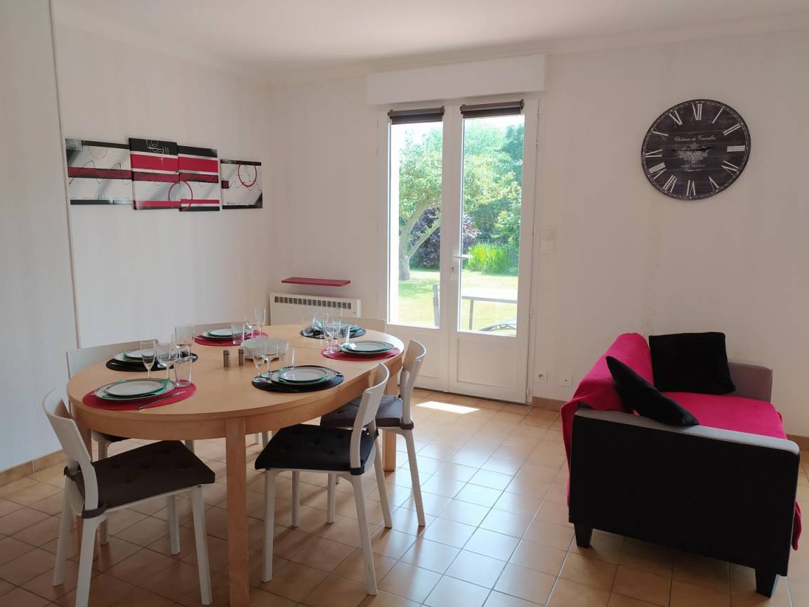 Dieses Urlaubshaus bietet : Im Erdgeschoss: eine separate Küche, ein Ess-Wohnzimmer, eine Toilette mit Handbecken (über zwei Stufen erreichbar). Im Erdgeschoss : 3 Zimmer (2 Einzelbetten 90x200) (1 Bett für 2 Personen 140x190cm) (1 Bett für 2 Personen 140x190cm), ein Badzimmer, eine separate Toilette. Ein 24 qm großer Garten mit Bäumen und Blumen und mit Terrasse verfügbar. Garage ebenfalls verfügbar. Parkmöglichkeit auch vor der Garage mit geschlossener Tür, oder entlang der Straße.