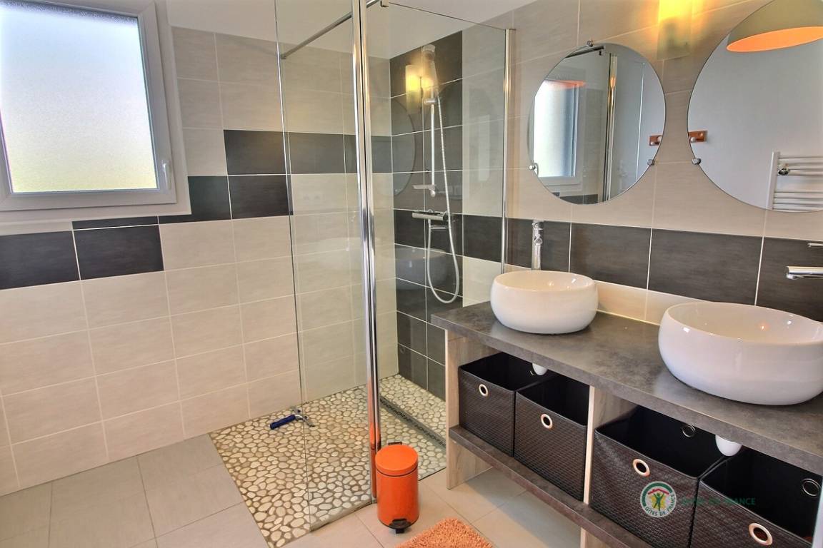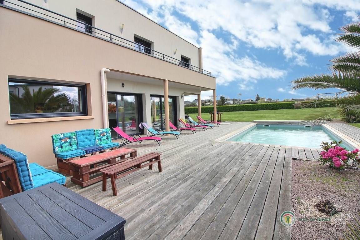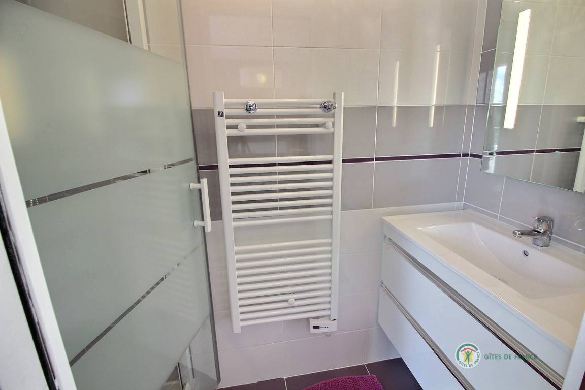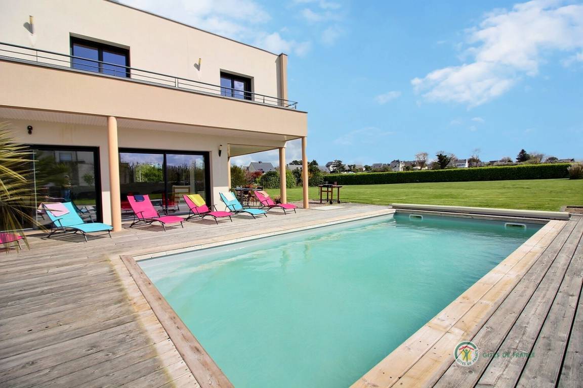 Ihre Ferienwohnung umfasst: eine Eingangshalle, ein Wohnzimmer mit hochwertiger Einbauküche. 2 Schlafzimmer, eines davon für Personen mit eingeschränkter Mobilität zugänglich – (2 160x200 Betten), Badezimmer (ebenerdige Dusche), separates WC mit Waschbecken. Obergeschoss: 3 Schlafzimmer mit Zugang zu einer Balkonterrasse, eines (1 160x200-Bett) mit eigenem Bad (Dusche), 2 Schlafzimmer mit jeweils 2 Einzelbetten (80x200). Schönes Badezimmer (Dusche + Badewanne), separates WC mit Waschbecken. Garage, Terrasse von 125 m². Überdachter beheizter Pool (außer im Winter mit Zuschlag von 40 €/Aufenthalt, außer Juli-August) von 8 x 4 Metern, verfügbar von Ende März bis Mitte November. In einem Schlafzimmer eingerichteter Telearbeitsplatz.