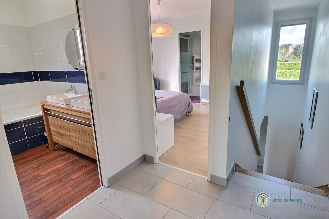 „Superbe villa de style moderne. Très confortable et très bien isolée. Le mobilier est impeccable et la literie de grande qualité. La cuisine offre tout le matériel nécessaire aux préparations culinaires. Les salles de bains sont très belles et bien équipées. (douche en bas et baignoire à l’étage). Réglages des robinets efficaces et faciles, ce qui n’est pas toujours le cas. Dans le garage, un lave linge et un sèche linge sont à disposition ainsi, petit plus, qu’une table de ping-pong Les extérieurs sont très bien entretenus. Robot tondeuse qui passe régulièrement, arbres et haies taillés. Une piscine est à disposition. (Mais pas utilisée en Novembre…) Pour les inconditionnels du téléphone, le réseau est sans problème et le wifi installé et efficace. La plage de Plurien est à 10/15 mn à pied. (Nous avons testé) Quelques commerces de bouche et de nombreux restaurants, pour la plupart ouverts, même en novembre, sont à même distance. Pour plus de commerces, la ville d’Erquy est à /- 15 mn en voiture. (Marché bien achalandé, restaurants, bars, banques, etc…) La côte est superbe. Nous l’avons parcouru de Erquy au cap Fréhel sur de nombreux sentiers de randonnées. (Chemin des douaniers) Enfin, nous avons été accueilli par un propriétaire sympathique qui a pris le temps de nous indiquer tous les points remarquables à visiter dans la région. Un grand merci à lui. Conclusion, cette location est plus que recommandable pour passer un excellent séjour en côte d’Armor“