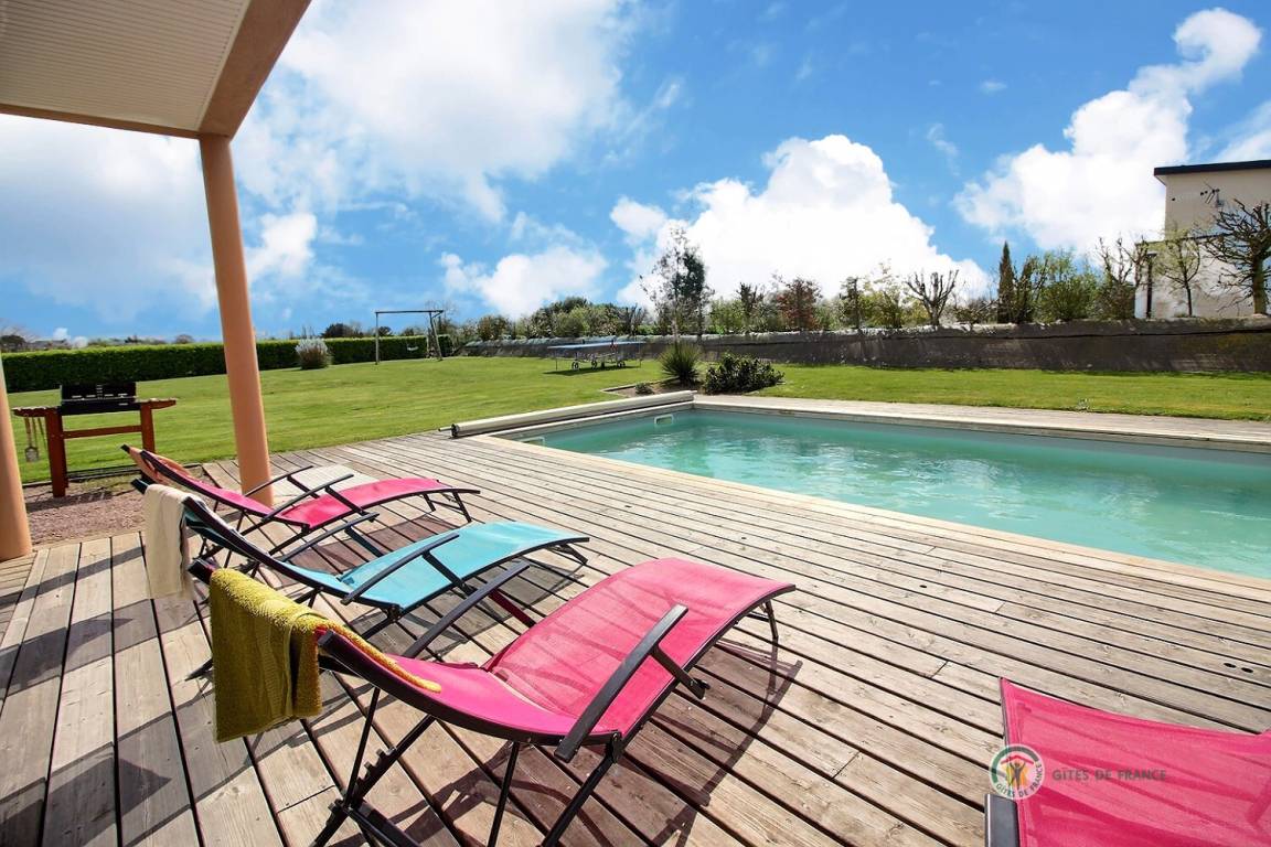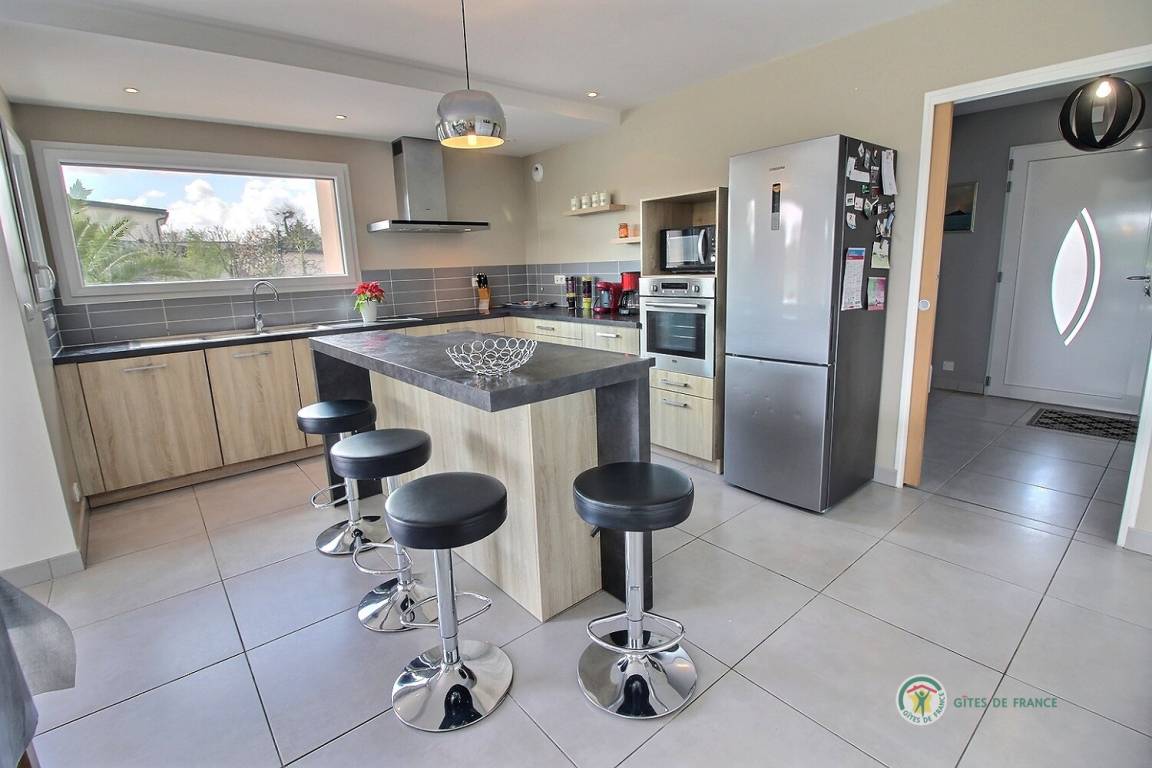 „La villa est spacieuse et bien aménagée dans un quartier très calme, bien située pour rayonner dans la région. Les villages voisins nous ont permis de faire des courses de première nécessité sans problème à cette période de l'année. A notre arrivée, le propriétaire nous a donné beaucoup d'explications concernant la villa et le matériel mis à disposition. Il s'est avéré que nous avons dû, hélas, lui réclamer des serviettes de toilette en plus des serviettes de douche (une villa 5 épis devrait avoir cela systématiquement, comme nous l'avons dans d'autres hébergements de ce niveau de confort sur le site des gîtes de France) et des torchons (deux pour une villa de 10 personnes c'est un peu juste). Nous avons aussi dû le solliciter pour un tire-bouchon cassé, un radiateur qui posait problème, des volets capricieux. Nous aurions aimé ne pas devoir le faire pour la tranquillité du propriétaire et la nôtre. Il y avait de la vaisselle en quantité (batterie de cuisine, assiettes et verres...) mais il manquait des coupes de champagne (que nous n'avons pas osé demandé), or nous fêtions un anniversaire. Les cafetières auraient besoin d'un détartrage. La porte coulissante de la salle de bain à l'étage ne fermait pas bien, ainsi que celle des toilettes du rez-de-chaussée. Mon mari, allergique, a trouvé de la poussière dans le placard de la chambre du rez-de-chaussée et l'a sentie dès son arrivée. Le reste de la maison était propre. Je ne doute pas que le propriétaire aura à cœur de remédier aux différents points soulignés pour les prochains locataires.“