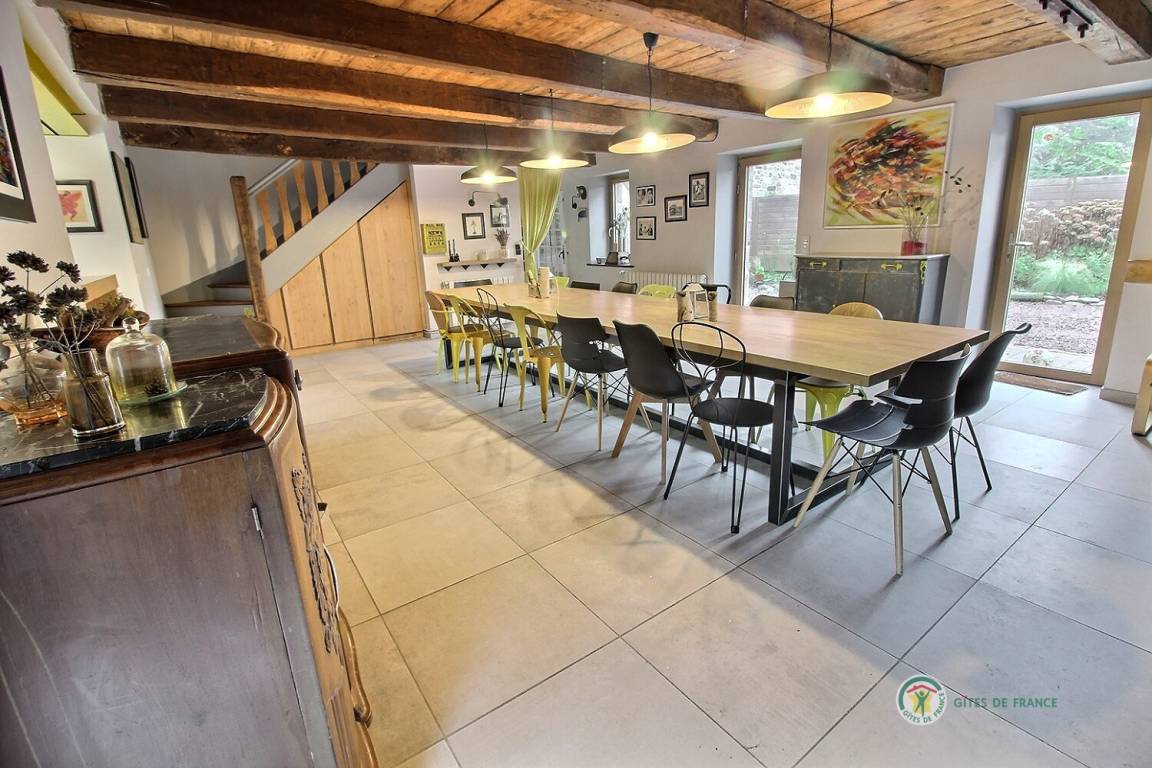 „Gîte tout à fait adapté pour les 13 copains d’une moyenne d’âge de 75 ansBeaucoup de places, cuisine parfaitement équipée, salle à manger et salon spacieux. Salon de jardin agreable, terrain de boules et baby-foot bien venus. Bref tout a été parfait et nous sommes unanimes pour recommander ce gîte. Merci à Typhaine et à sa disponibilité“