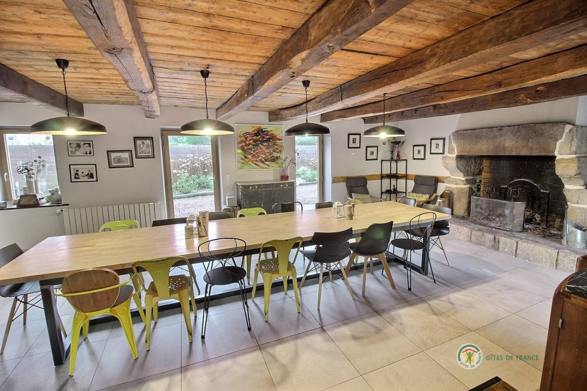 „Super séjour d’une semaine entre 13 amis nordistes retraités. La maison et le jardin sont très agréables. La cuisine est top. La salle à manger est immense et très spacieuse avec une cheminée gigantesque très appréciée en ces soirées automnales. Léger bémol, les 3 chambres à l'étage mériteraient une salle de bains et un WC. Baby-foot et terrain de pétanque très appréciés aussi. Accueil génial de Typhaine et de son mari Richard au "Franglais" délicieux Pour résumer, on recommande ce gîte sans restriction pour un séjour en famille (nombreuse) ou entre amis.“