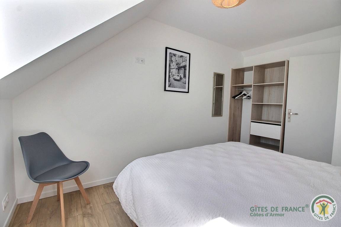 Obergeschoss: 1 Schlafzimmer (1 Bett 160x200), 1 Schlafzimmer (2 Betten 80x200, die auf Anfrage zusammengestellt werden können), Badezimmer (Dusche und WC).