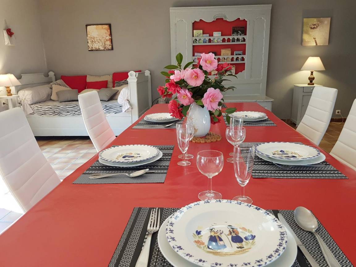 „Nous avons passé une semaine à 6 personnes pour le travail. Le gîte a beaucoup de charme: Une jolie maison ancienne, des meubles anciens remis au goût du jour... Et est très agréable à vivre avec une cuisine bien équipée, une grande salle à manger -salon séparer très pratique pour prendre des repas agréables. Les 2 salles de bains et 2 toilettes sont un plus. On peut facilement s'isoler les uns des autres si besoin, ce qui peut être agréable quand on est en groupe. La vue sur le très joli jardin des propriétaires depuis les chambres est tout à fait charmante. Nous reviendrions avec grand plaisir !“