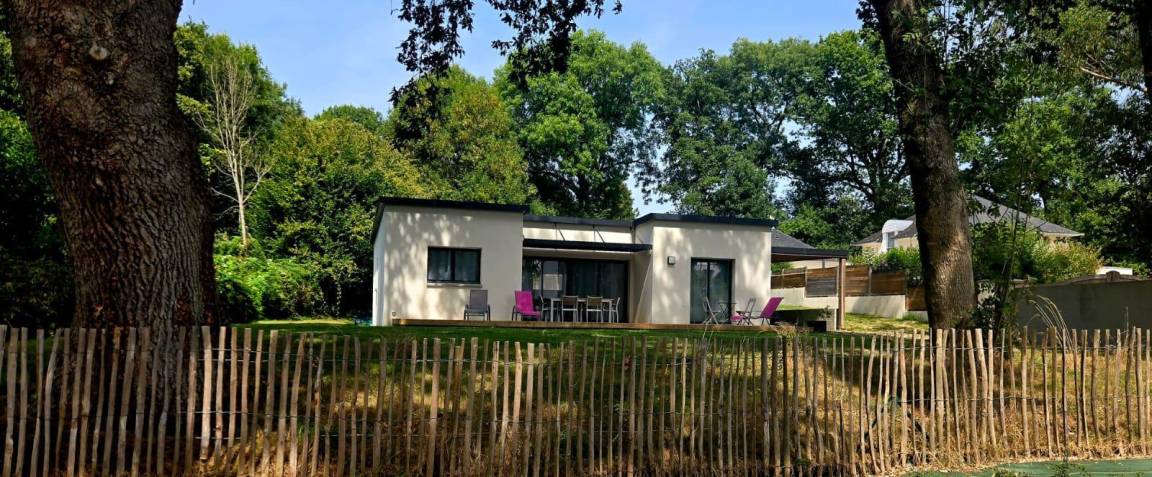 Dieses einstöckige Ferienhaus besteht aus einer Eingangshalle mit Schrank, einer zum Wohnzimmer offenen Küche, einer Waschküche, einer separaten Toilette mit Waschbecken, einem Duschbad und 3 Schlafzimmern (160x200 / 160x200 / 2x90x200).