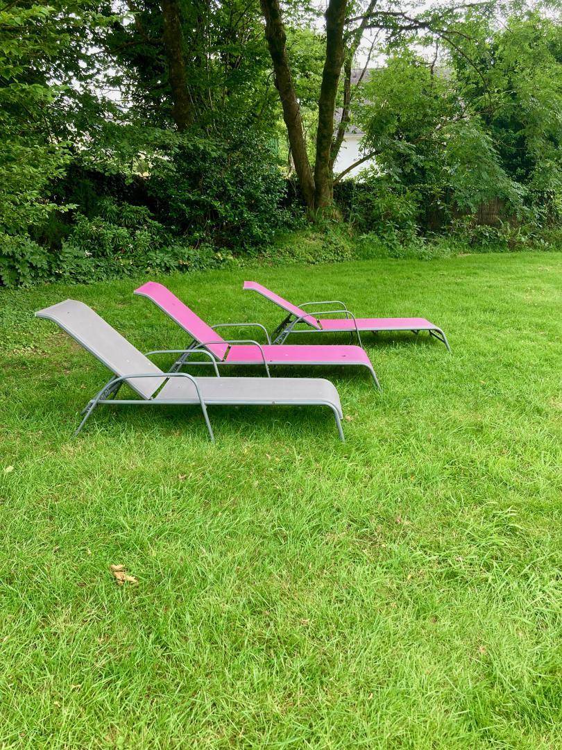 Im Außenbereich befindet sich ein 500 m² großes, nicht eingezäuntes Grundstück mit Gartenmöbeln, Grill, Liegestühlen und Sonnenschirm. Zur Unterbringung von Sportgeräten steht eine Garage zur Verfügung. Ihr Fahrzeug können Sie unter dem Carport parken.