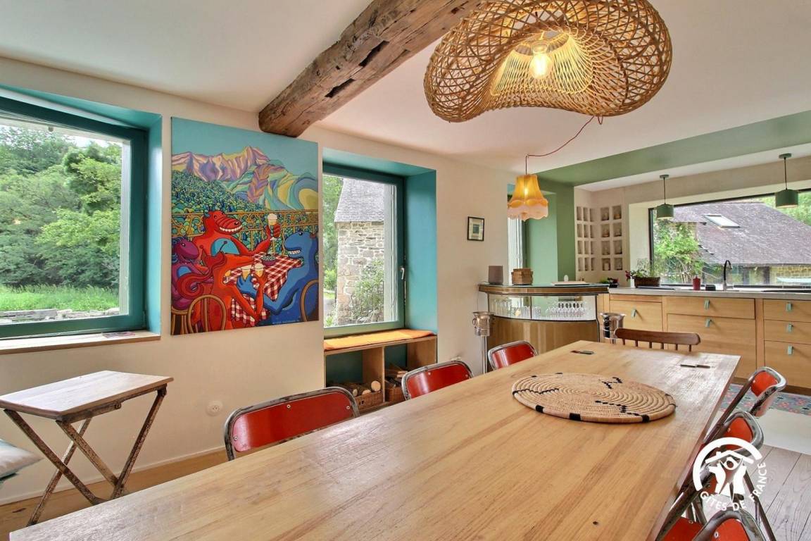 Das Anwesen, eine ehemalige Wassermühle aus dem 17. Jahrhundert und ein komplett renoviertes Müllerhaus, ist eine Oase der Ruhe, in der die Zeit stillzustehen scheint. Umgeben von 7,5 Hektar Wald, Wiesen und einem Fluss lädt dieser einzigartige Ort zur Ruhe, Entspannung und zur Rückbesinnung auf das Wesentliche ein.