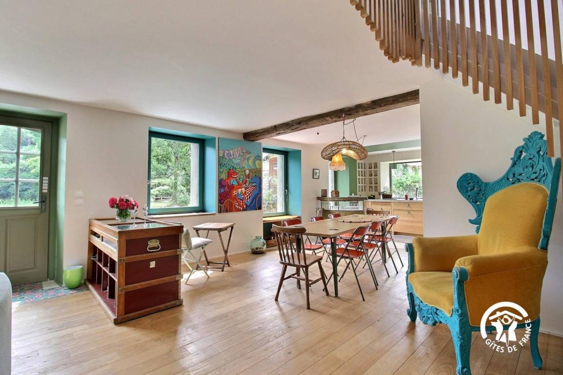 Das Anwesen, eine ehemalige Wassermühle aus dem 17. Jahrhundert und ein komplett renoviertes Müllerhaus, ist eine Oase der Ruhe, in der die Zeit stillzustehen scheint. Umgeben von 7,5 Hektar Wald, Wiesen und einem Fluss lädt dieser einzigartige Ort zur Ruhe, Entspannung und zur Rückbesinnung auf das Wesentliche ein.