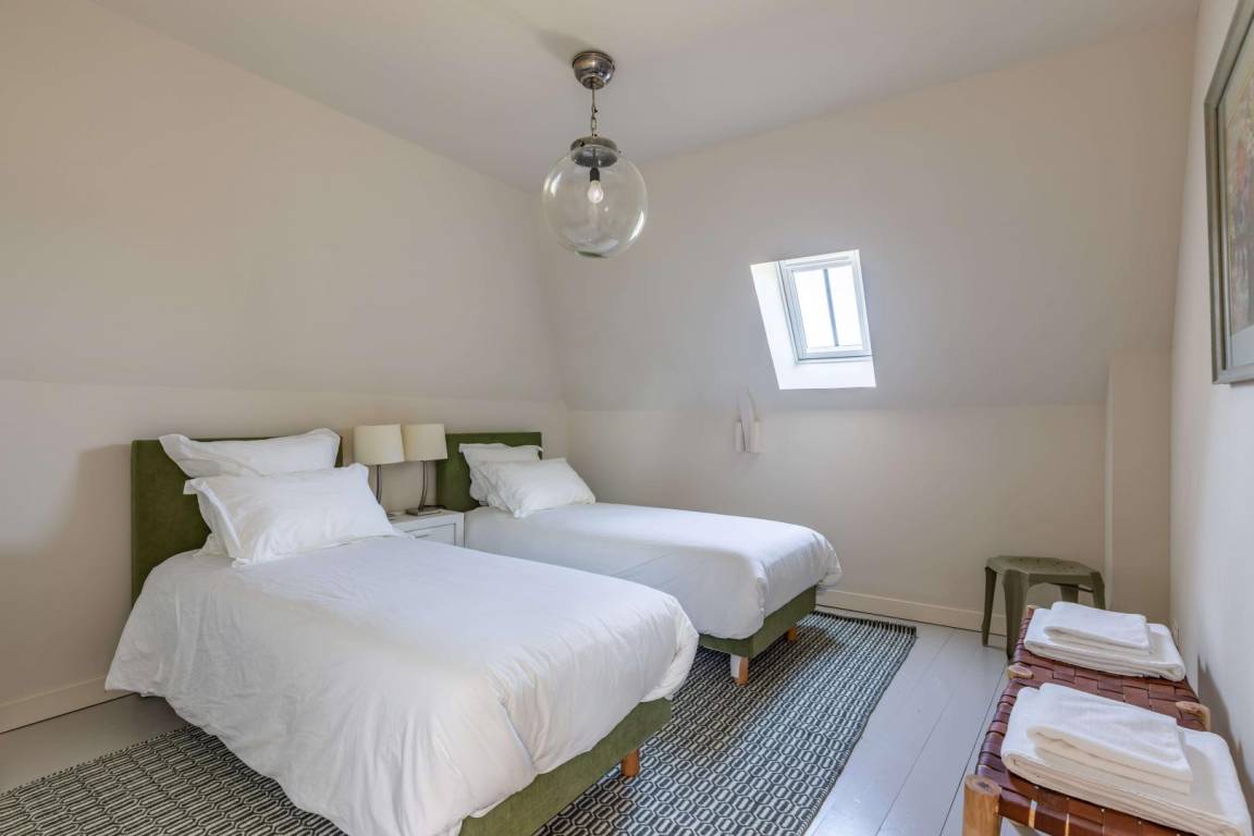 Das Anwesen verfügt über ein beheiztes Hallenbad (8 x 3,5 m) mit Gegenstromanlage und eine 4-Sitzer-Sauna (geöffnet von 10 bis 22 Uhr). Dieser lichtdurchflutete Raum lädt zu jeder Jahreszeit mit dem nach Süden ausgerichteten Glasdach zum Entspannen ein. Sie können sich in unseren Relaxsesseln am Swimmingpool ausstrecken, im bewaldeten Park spazieren gehen und Tischtennis und Pétanque spielen. Das Ferienhaus Erdeven bietet Ihnen im Erdgeschoss: ein großes Wohnzimmer mit Wohnzimmer, Lounge und voll ausgestatteter Küche, einen Büroraum und eine Toilette mit Waschbecken. Obergeschoss: 2 Schlafzimmer mit je 1 160 Betten (modular 2 x 80) und ein Badezimmer mit eigenem WC. Draußen genießen Sie einen kleinen privaten Gartenbereich und eine Terrasse mit Blick auf den Wassergraben. Die Besitzer wohnen im Herrenhaus und bieten ein Gästehaus und einen weiteren Gite an. Zur Mitbenutzung: Parkplatz, Schwimmbad und Sauna. Das Herrenhaus ist für kleine Kinder nicht sicher.