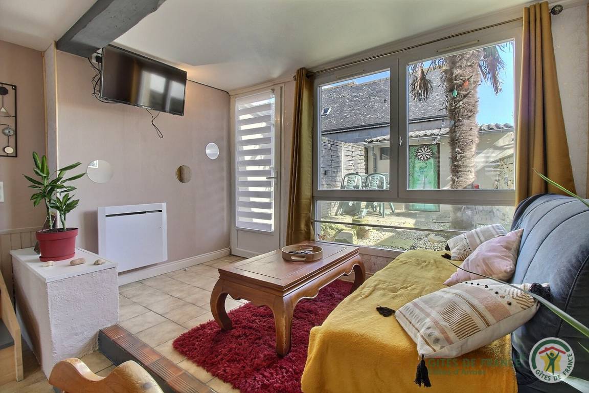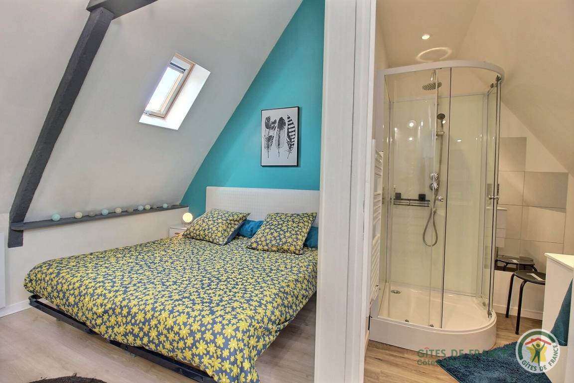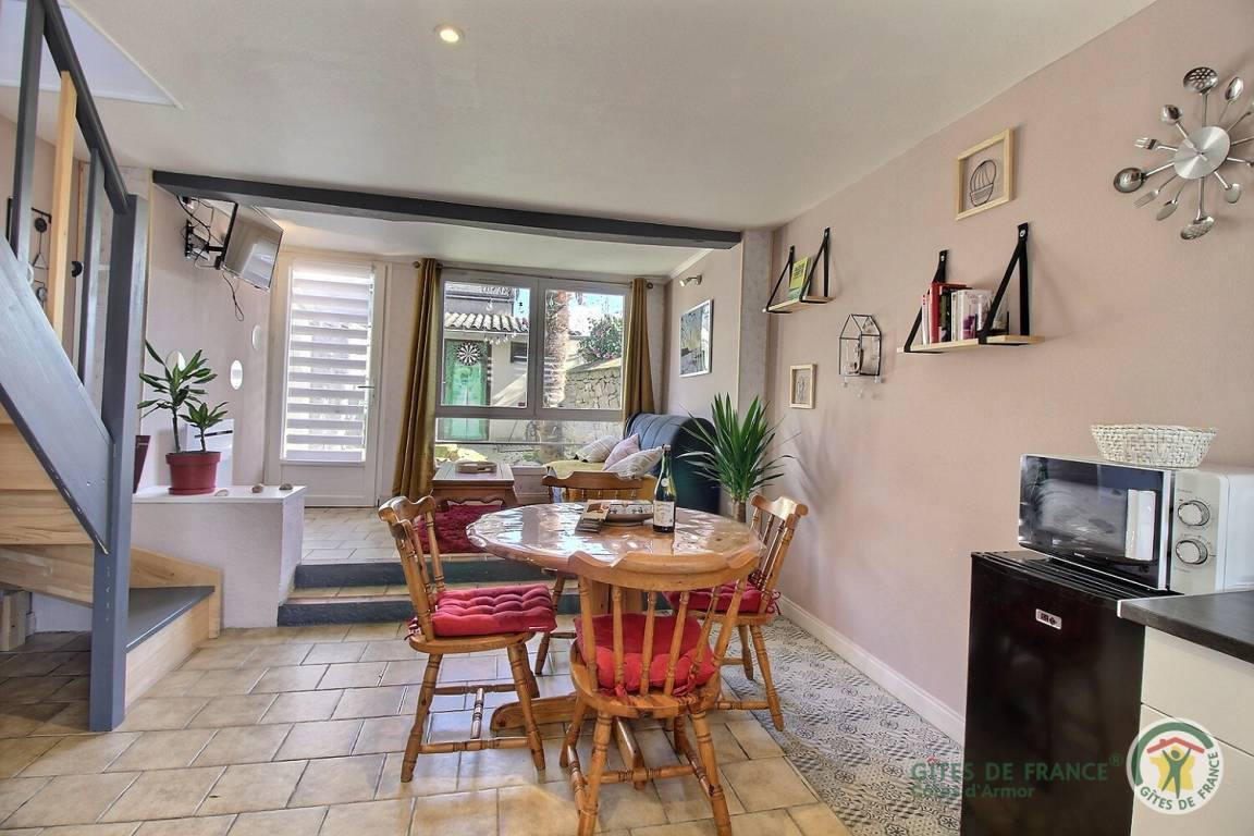 Ihre Ferienwohnung umfasst im Erdgeschoss: Wohnzimmer mit Einbauküchenbereich, separates WC. Oben: ein Schlafzimmer im Zwischengeschoss mit 2 Einzelbetten, die zu 1 Bett 160x200 zusammengestellt werden können, Badezimmer (Dusche). Innenhof von 20 m² mit Gartenmöbeln ausgestattet. Parken auf dem öffentlichen Parkplatz direkt vor der Gîte.
