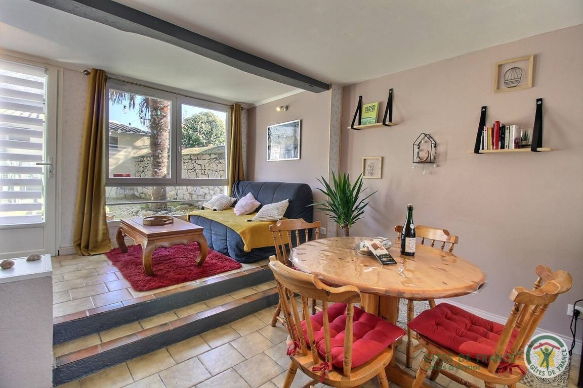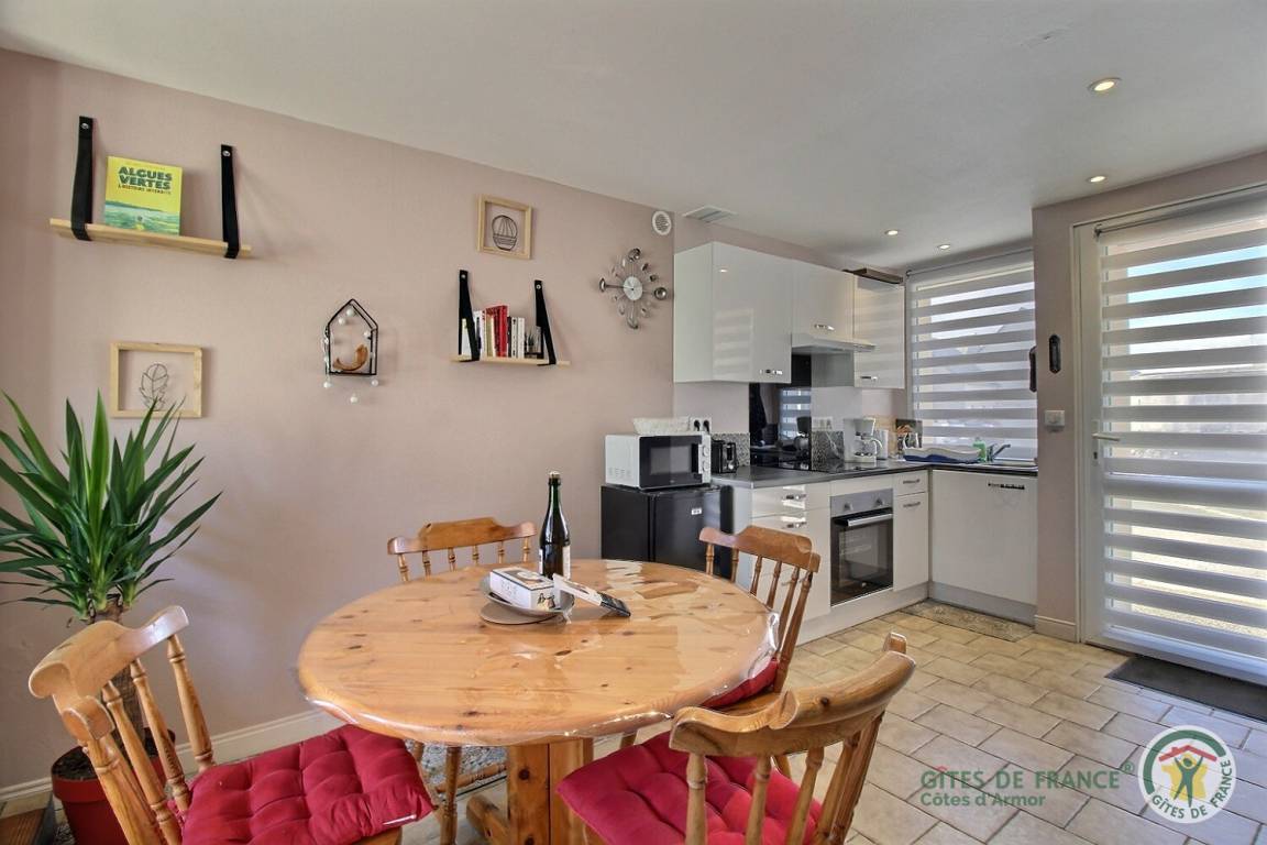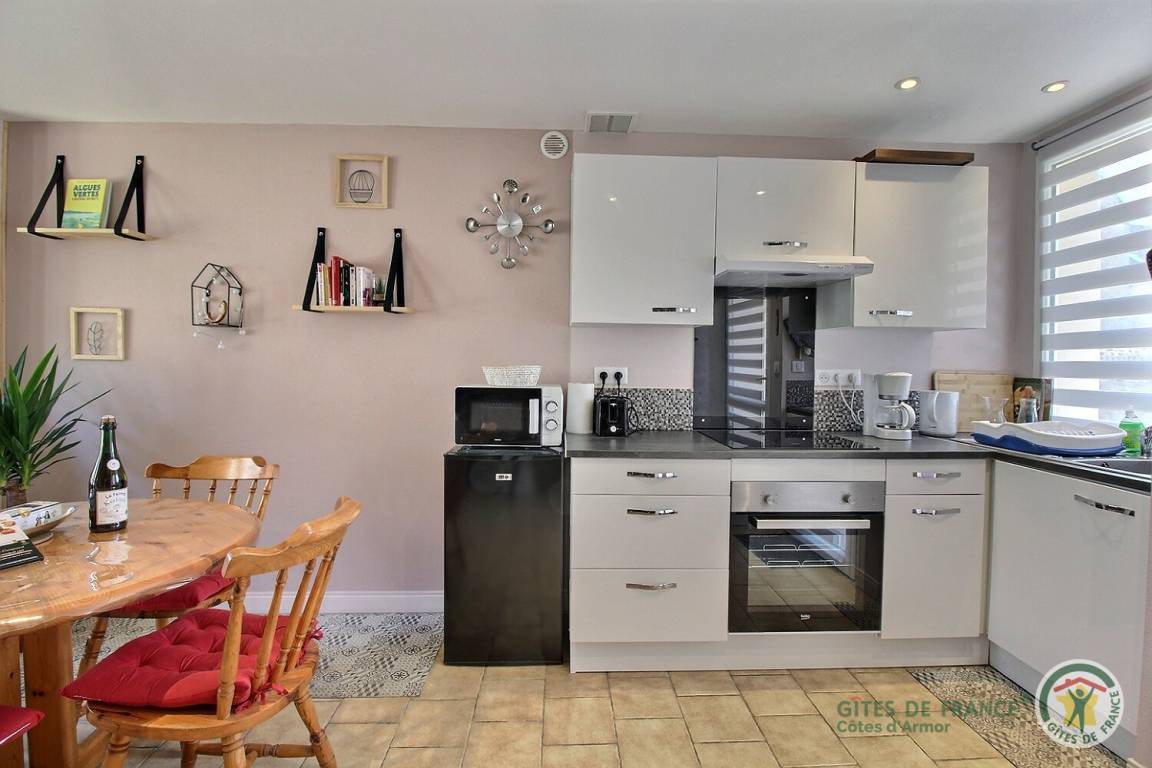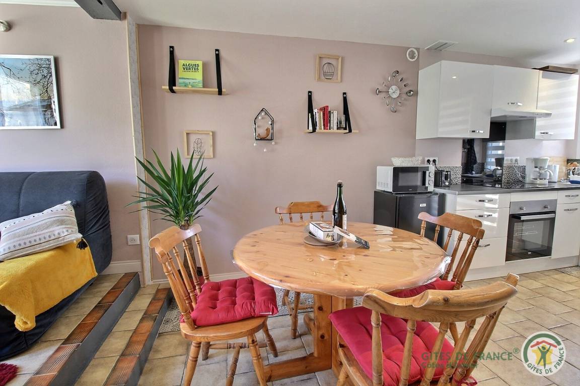 Ihre Ferienwohnung umfasst im Erdgeschoss: Wohnzimmer mit Einbauküchenbereich, separates WC. Oben: ein Schlafzimmer im Zwischengeschoss mit 2 Einzelbetten, die zu 1 Bett 160x200 zusammengestellt werden können, Badezimmer (Dusche). Innenhof von 20 m² mit Gartenmöbeln ausgestattet. Parken auf dem öffentlichen Parkplatz direkt vor der Gîte.