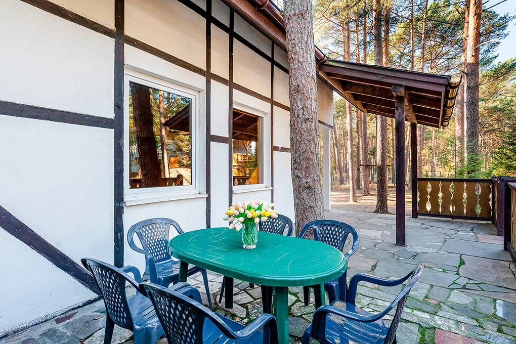 Ort: Pobierowo. Ruhige Lage in einer Ferienhaussiedlung auf einem großen Naturgrundstück mit lichtem Kiefernwald. Ostseestrand ca. 900 m. Ortsmitte 600 m, Lebensmittelgeschäft 30 m. Hallenbad 800 m.