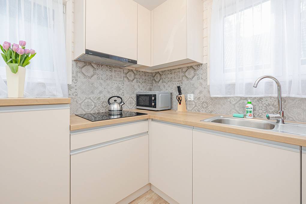 PL 30.9 Ferienhaus 2-6 Pers.: 3-Zimmer-Ferienhaus mit 65 qm Wohnfläche über 2 Etagen. Parterre: Wohn-/Essraum mit Couchgarnitur (Ausziehcouch 2 Pers.), Flachbild Sat-TV (deutsche Programme), großem Esstisch, Küchenzeile (Induktionsherd 4 Platten, Abzugshaube, Mikrowelle, Spülmaschine). Modernes Bad mit Du, Wb, Bidet, WC. 1. Etage: 3-Bettzimmer mit Doppelbett, Einzelbett, TV. 3-Bettzimmer mit Doppelbett, Einzelbett. Kleines Bad mit Wb, WC. Hinweis: Die max. Belegung darf 6 Pers. nicht überschreiten.