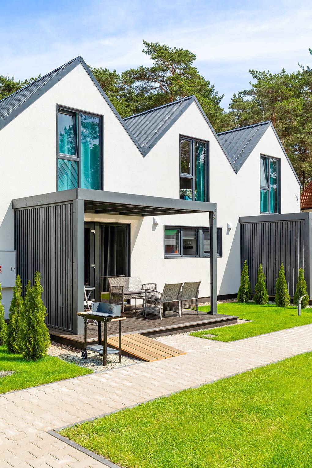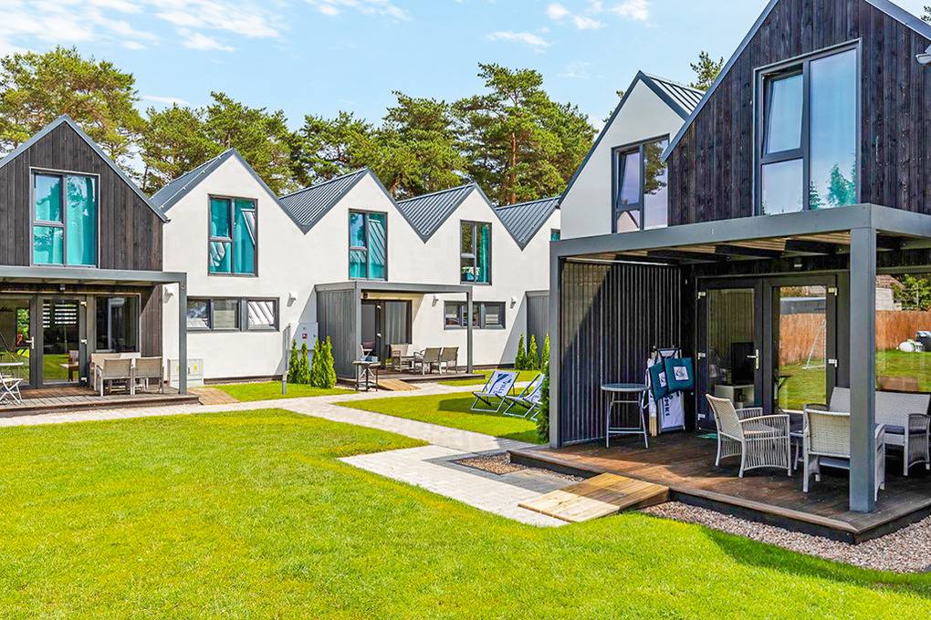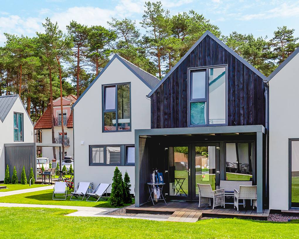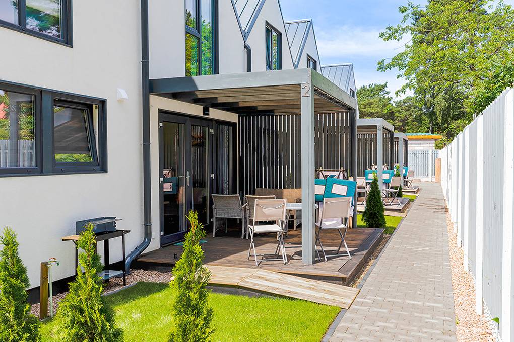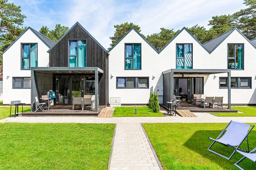 PL 30.7 Ferienhäuser 1-7 Pers.: Komfortables 3-Zimmerhaus mit ca. 60 qm Wohnfläche über 2 Etagen. Parterre: Wohn-/Essraum mit Sofa (Ausziehcouch 2 Pers.), Flachbild-Sat-TV mit deutschen Programmen, Esstisch, gut ausgestatteter Küchenzeile (2 Induktionsplatten, Mikrowelle, Spülmaschine). Bad: Du, Wb, WC, Fön. 1. Etage: 3-Bettzimmer mit Doppelbett, Einzelbett, Safe, Sat-TV. 2-Bettzimmer. Terrasse mit Sitzmöbeln, Grill.