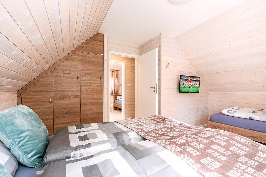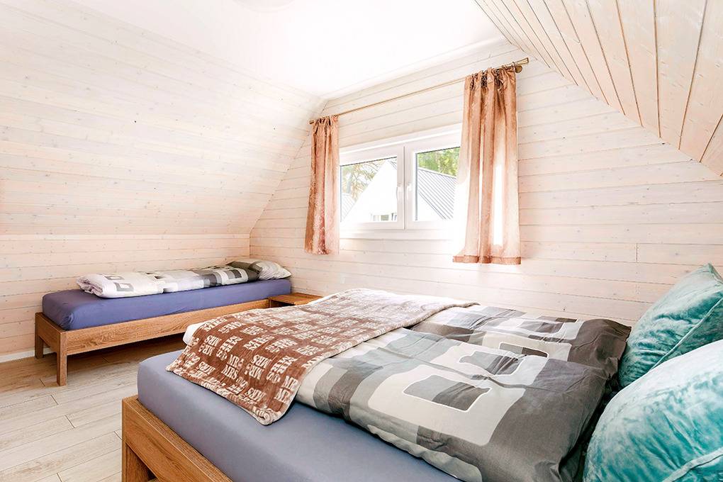 PL 30.21 Ferienhaus 3-6 Pers.: 3-Zimmer-Ferienhaus mit 65 qm Wohnfläche über 2 Etagen. Parterre: Wohn-/Essraum mit Couchgarnitur (Ausziehsofa 2 Pers.), Flachbild Sat-TV (deutsche Programme), großem Esstisch, Küchenzeile (4 E-Platten, Abzugshaube, Mikrowelle, Spülmaschine). Bad/WC. 1. Etage: Zwei 3-Bettzimmer mit Doppelbett, Einzelbett. Hinweis: Die max. Belegung darf 6 Pers. nicht überschreiten.