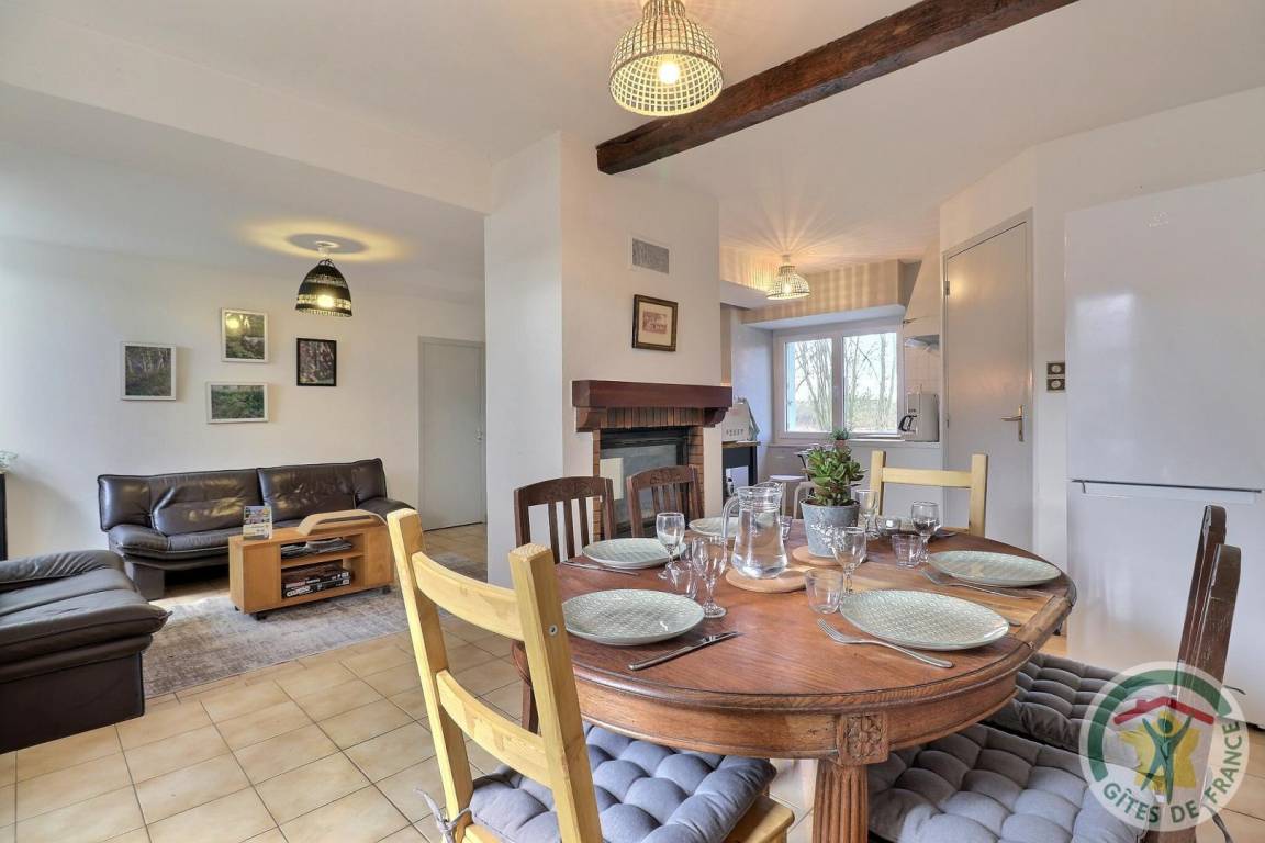 Der schöne zentrale Kamin mit doppelter Öffnung ist das Stärkestück dieser Gîte und schafft eine sanfte Atmosphäre im großen, freundlichen Wohnzimmer, die zum Entspannen einlädt. Draußen sorgen große Bäume und Bambushecken für Privatsphäre und Entspannung.