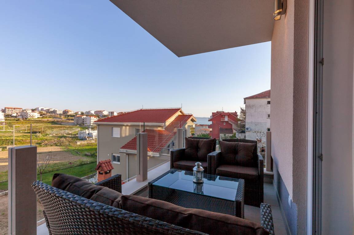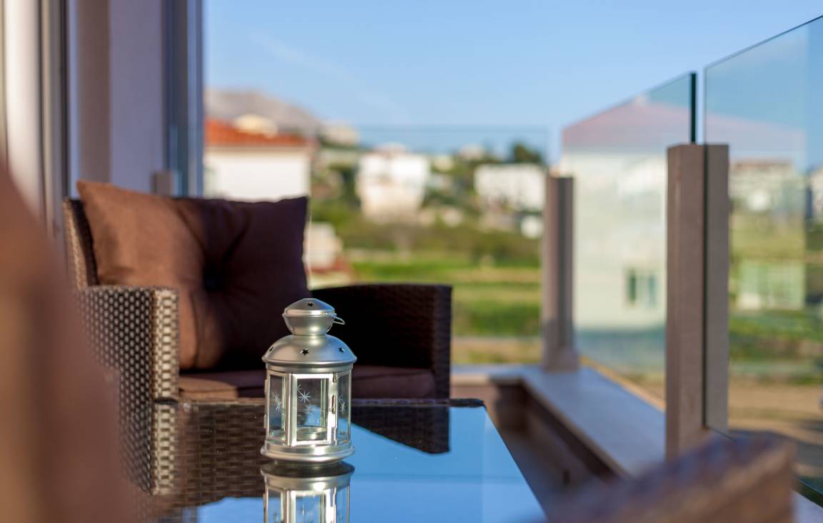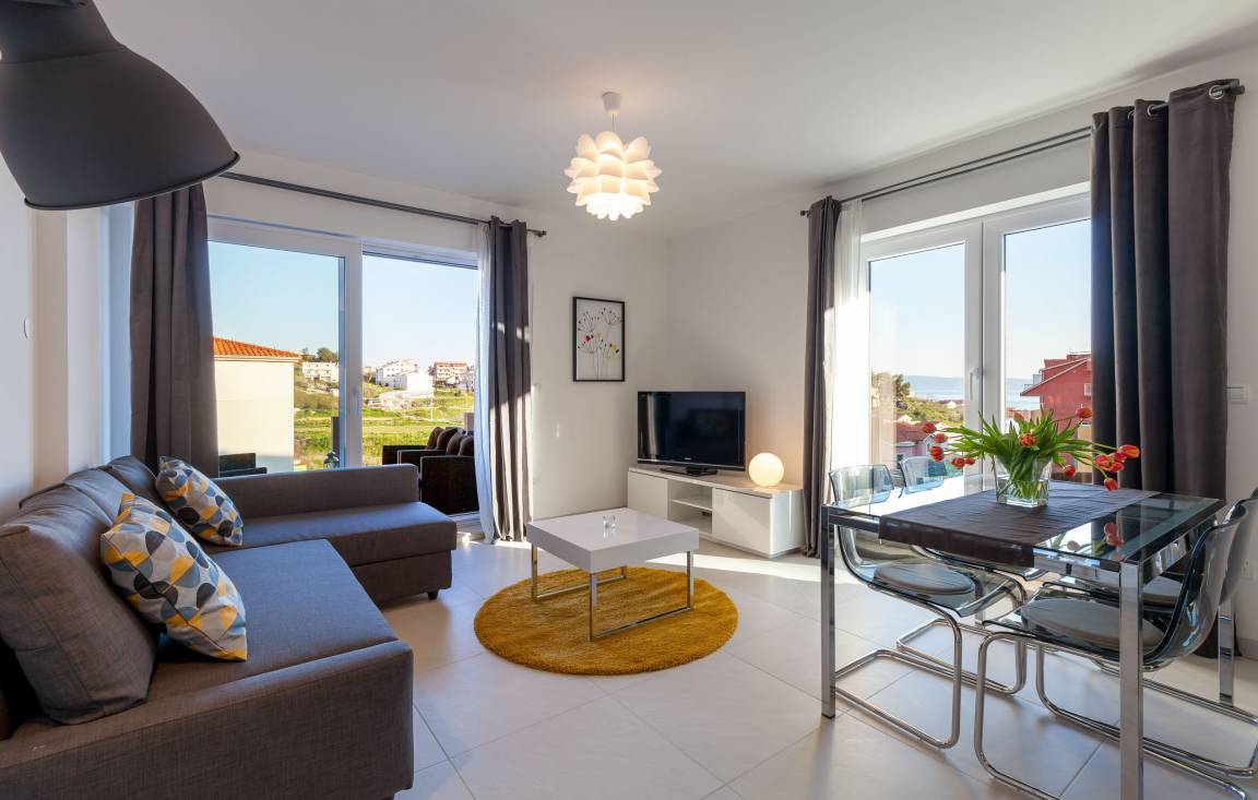 Das Appartement ist brandneu und befindet sich in einem privaten kleinen Gebäude in Podstrana und verfügt über einen privaten Parkplatz, nur 10-15 Minuten vom Zentrum von Split entfernt. Es gibt schöne Strände in der Nähe, 5 Gehminuten von der Wohnung entfernt (400 Meter).