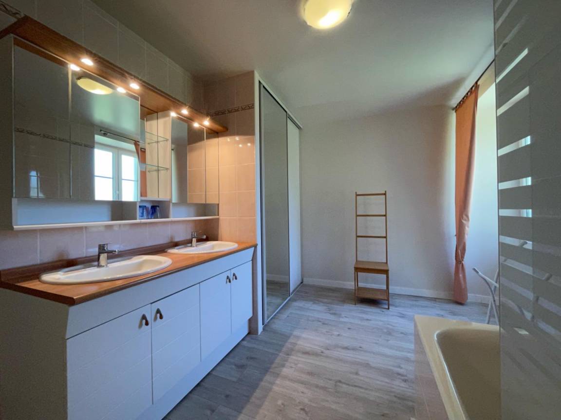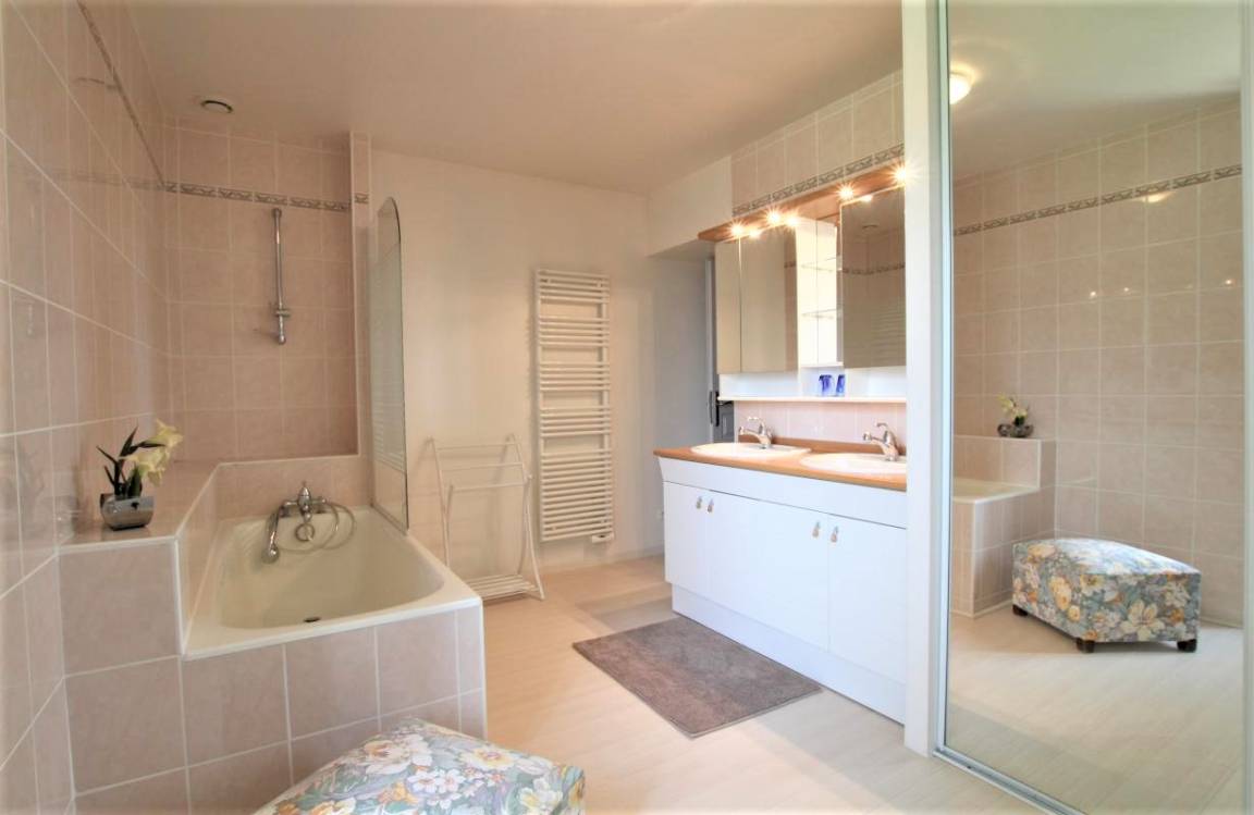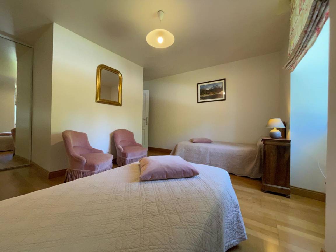 Obergeschoss: 3 Schlafzimmer (1 Doppelbett, 1 Queensize-Bett, 2 Einzelbetten), 1 Badezimmer (2 Waschbecken, 1 Badewanne). 2 separate WCs.