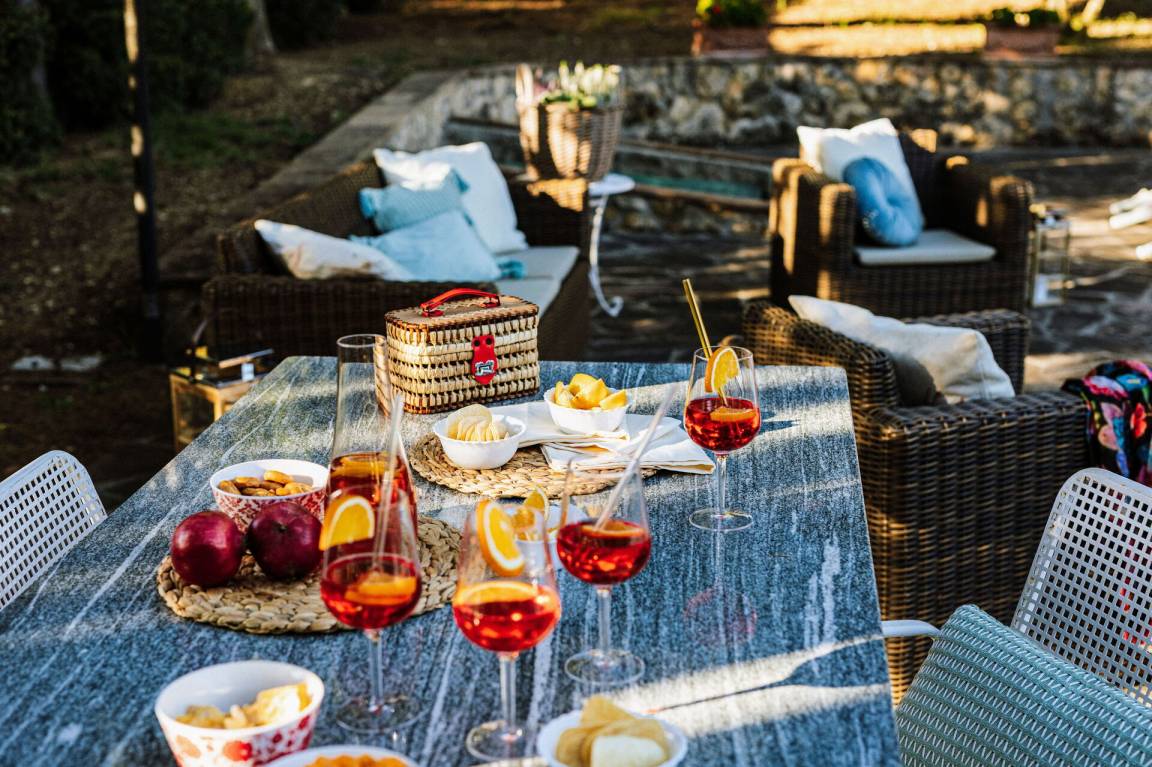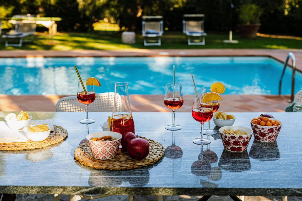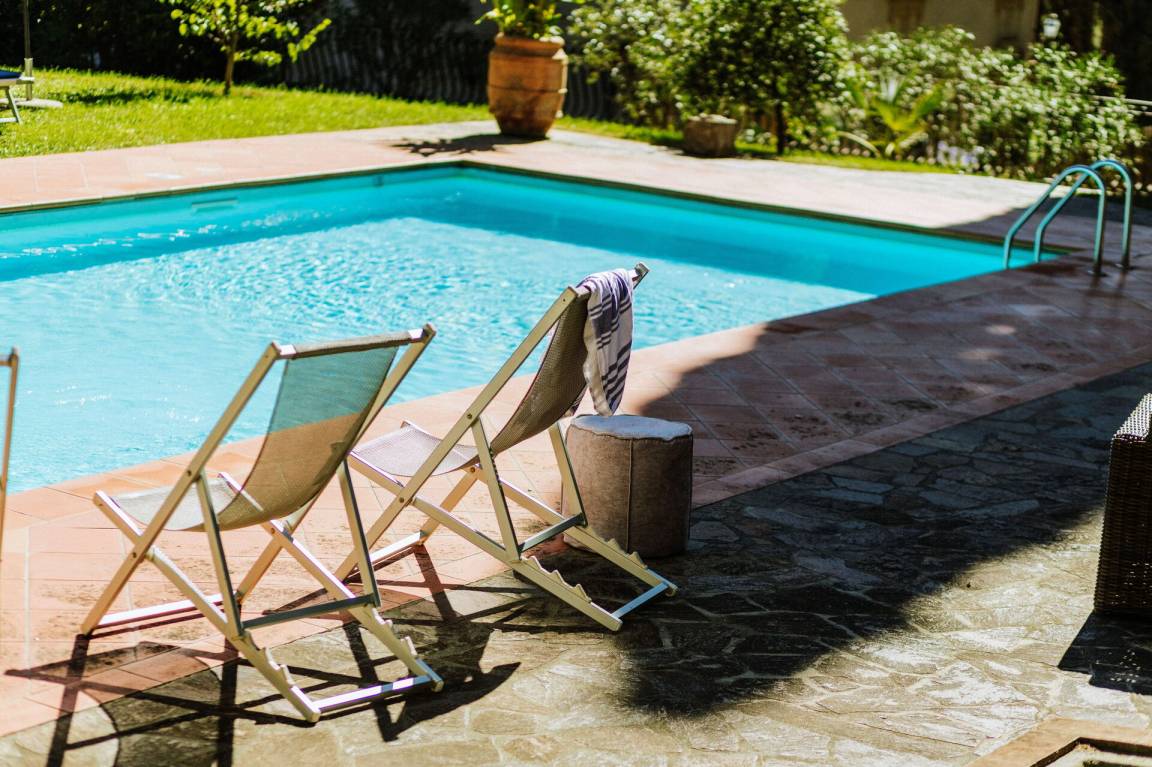 Garten (10000 m²): Schwimmbad (Breite: 5m, Länge: 10m, max. Tiefe: 1.4m, min. Tiefe: 1.2m, Außen, umzäunt), Dusche, WiFi Internet, Grill, Außenbereich für das Essen im Freien, Esstisch (Personen: 14), Pavillon, Gartenmöbel, Terrassenmöbel, vier Sonnenliegen, umzäuntes Grundstück.