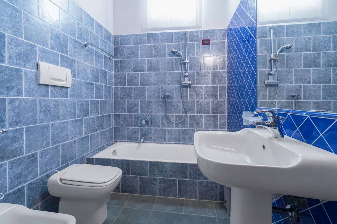 Badezimmer: Waschbecken, WC, Bidet, Badewanne, Dusche, Fön, Waschmaschine, WiFi Internet.