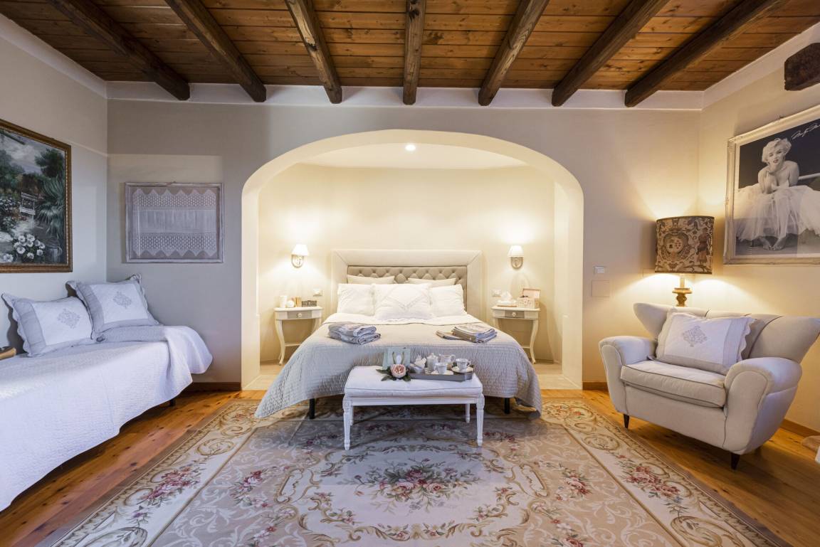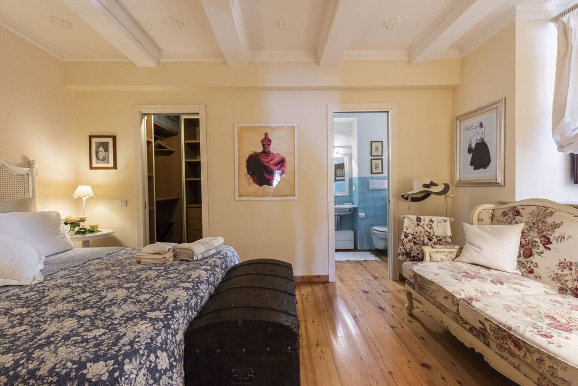 Schlafzimmer mit Bad: Doppelbett, WiFi Internet, Klimaanlage, Waschbecken, WC, Bidet, Dusche.