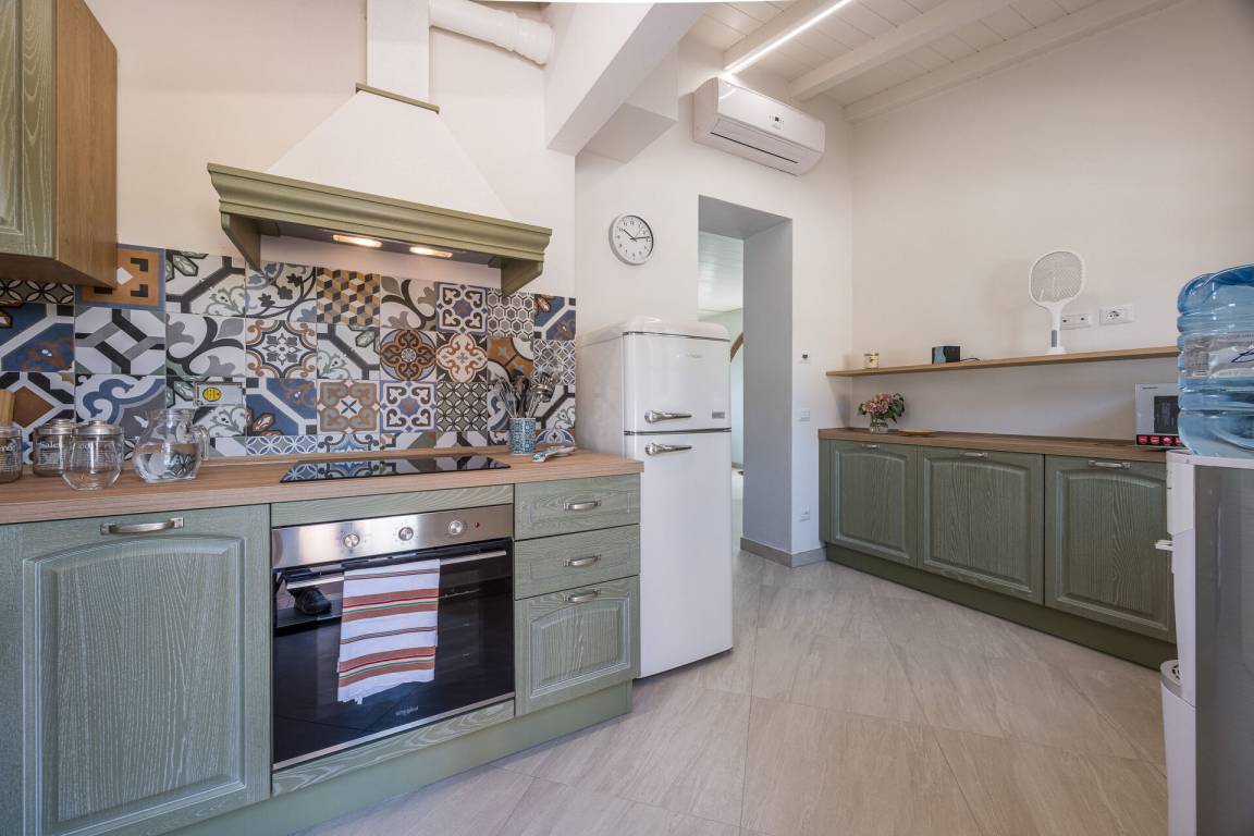 Küche (10 m²): gut ausgestattete Küche, Spülmaschine, Kühlschrank, Tiefkühler, Mikrowelle, Ofen, Toaster, Italienische Kaffeemaschine, WiFi Internet, Fliegengitter, Kinderhochstuhl, Rauchmelder, Ausgang auf den Garten.