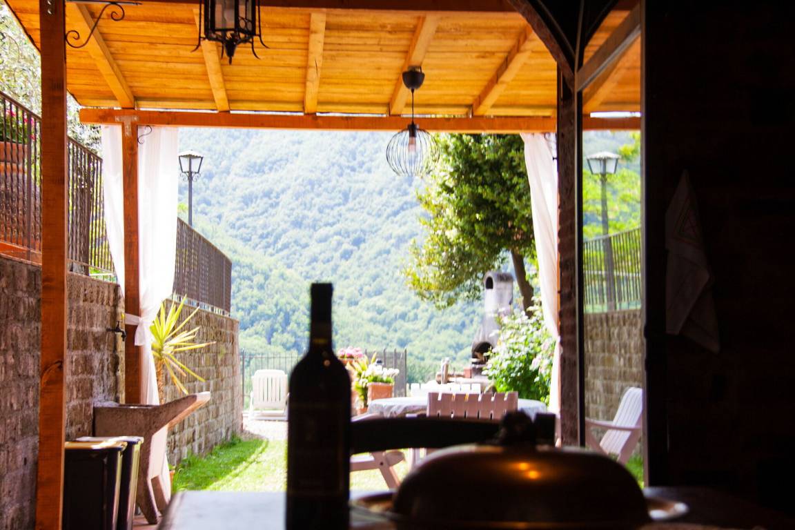 Wohnküche: gut ausgestattete Küche, Spülmaschine, Kühlschrank, Tiefkühler, Mikrowelle, Herd, Ofen, Italienische Kaffeemaschine, Doppel-Schlafsofa, WiFi Internet, Klimaanlage, Ausgang auf den Garten, Ausgang auf den Patio.