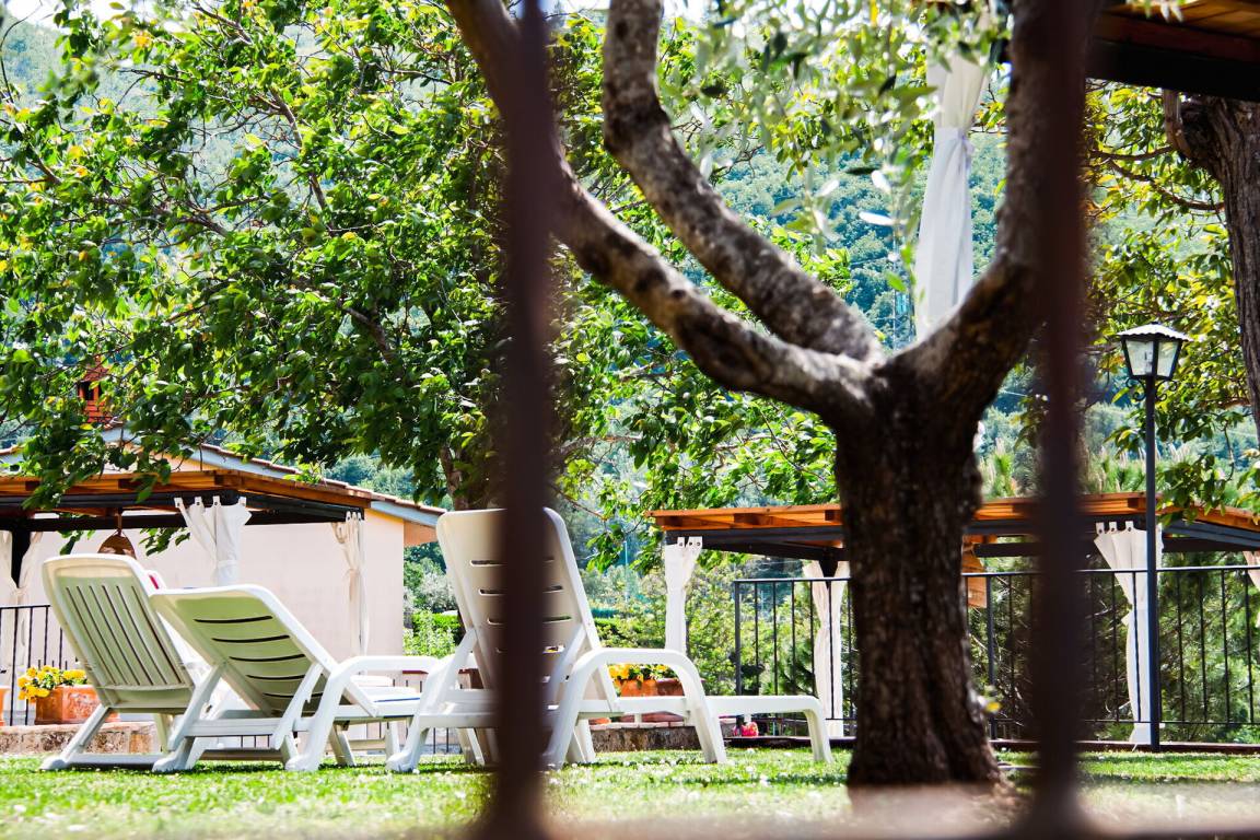 Sonnenterrasse (100 m²): WiFi Internet, Dusche, Gartenmöbel, Sonnenliege.