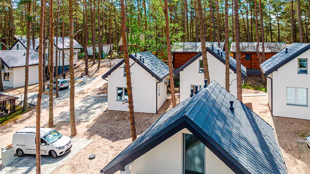 PL 35.1 Ferienhaus 2-6 Pers.: 3-Zimmer-Ferienhaus mit 60 qm Wohnfläche über 2 Etagen. Parterre: Wohn-/Essraum mit Couchgarnitur (Ausziehcouch 2 Pers.), Flachbild Sat-TV (deutsche Programme), großem Esstisch, Küchenzeile (Induktionsherd 2 Platten, Abzugshaube). Modernes Bad mit Du, Wb, WC. 1. Etage: Schlafzimmer mit Doppelbett, Balkon. 2-Bettzimmer mit 2 Einzelbetten (80 x 185 cm). Separates WC mit kleinem Wb.