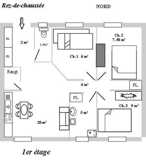 62 m² Gîte ∙ 3 Schlafzimmer ∙ 5 Gäste