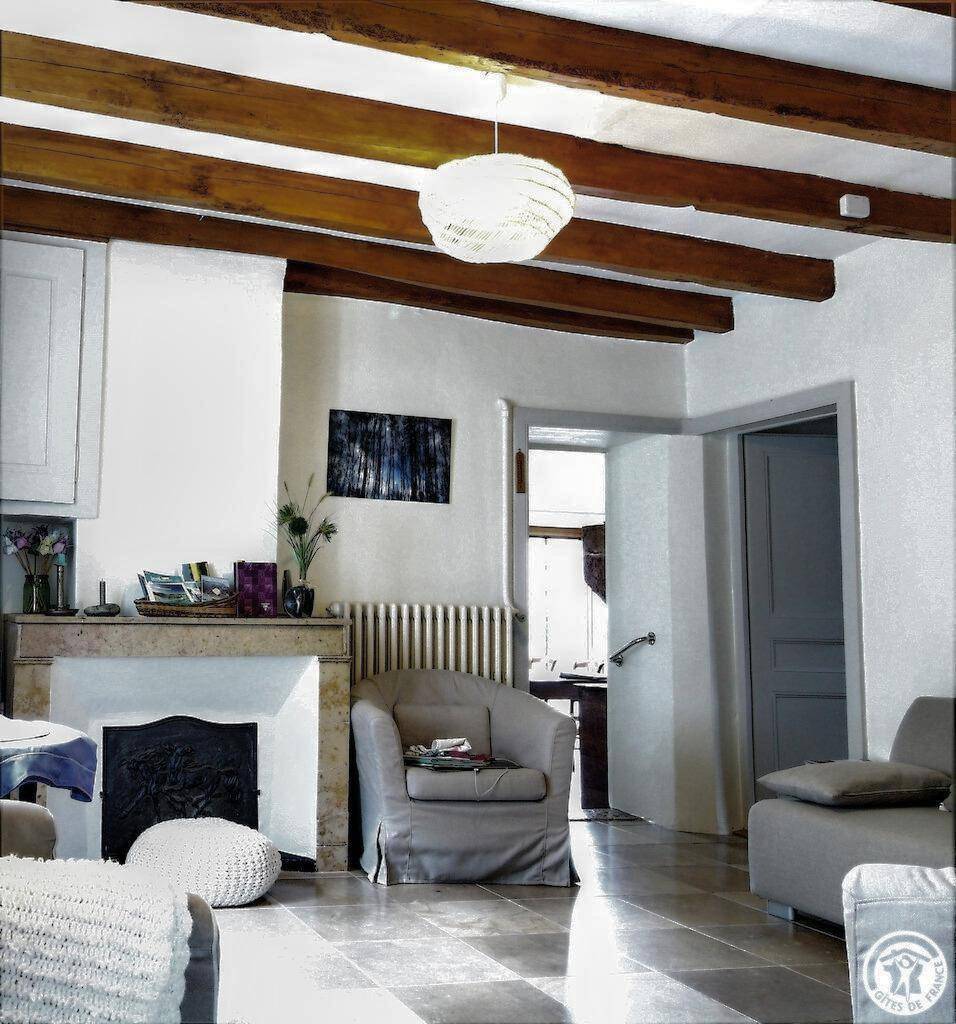 „An old French barn converted to a beautiful gite. Peaceful location in the centre of a small French town with a small lake with a beach a stones throw from the gite.“