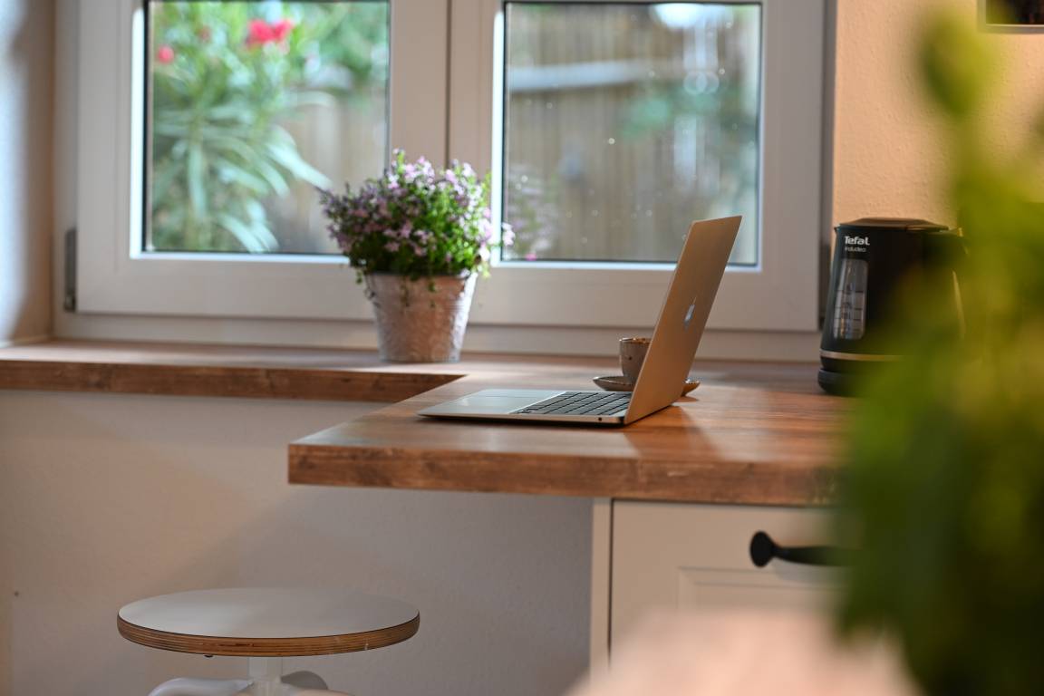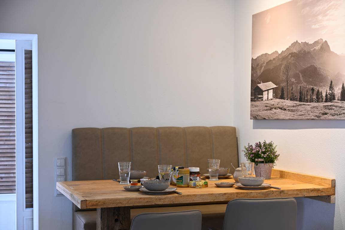 Die Wohnung bietet einen privaten Zugang vom Parkplatz in den Garten. Die gesamte Wohnung ist barrierearm. Der Tisch im Wohnzimmer ist zwar ein Hochtisch - sollte aber ein Gast mit Rollstuhl anreisen, so geben Sie mir gerne frühzeitig Bescheid, dann kann ich kann ich einen normalen Tisch in den Wohnraum schaffen - wenn gewünscht.