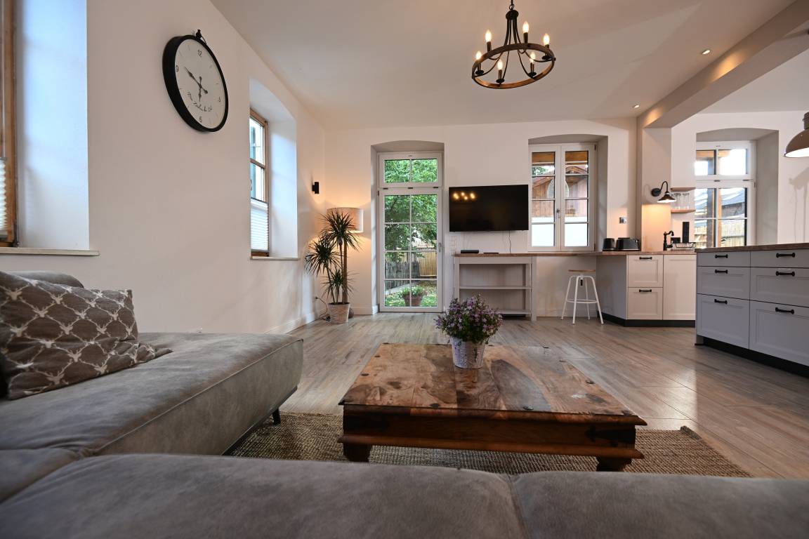 Modern trifft Gemütlichkeit - mit 135 qm Wohnfläche eine außergewöhnlich große, moderne Landhaus-Ferienwohnung mit einem offenen Raumkonzept und historischem Charme einer alten Gaststätte aus dem Jahre 1880 . Das Haus und die Wohnungen wurden in 2023/2024 aufwändig saniert.