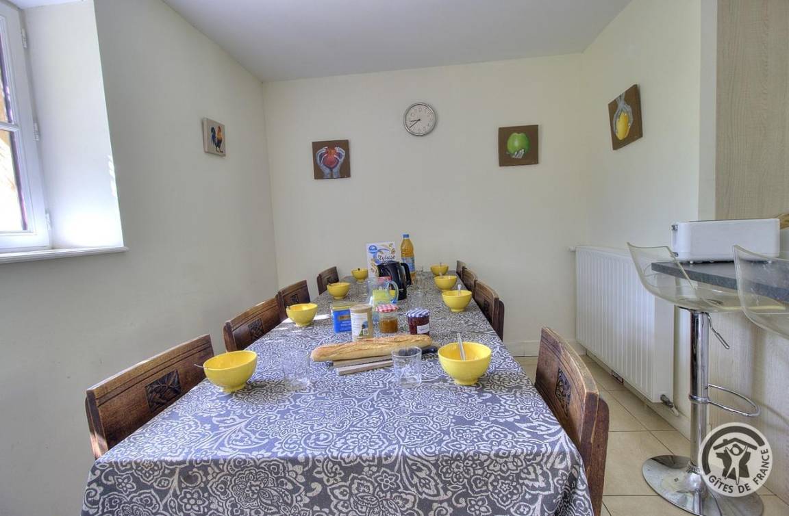 „Gîte situé dans un endroit très calme avec un bel environnement. Pratique: Parking, grand séjour salon/salle à manger, cuisine bien équipée, chauffage Ok, WIFI Ok, sanitaires Ok. Déco charmante. Literies Ok. Et accueil parfait.“