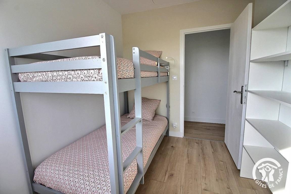 - ein kleines Schlafzimmer in der Mitte mit zwei Etagenbetten (90 x 190 cm),