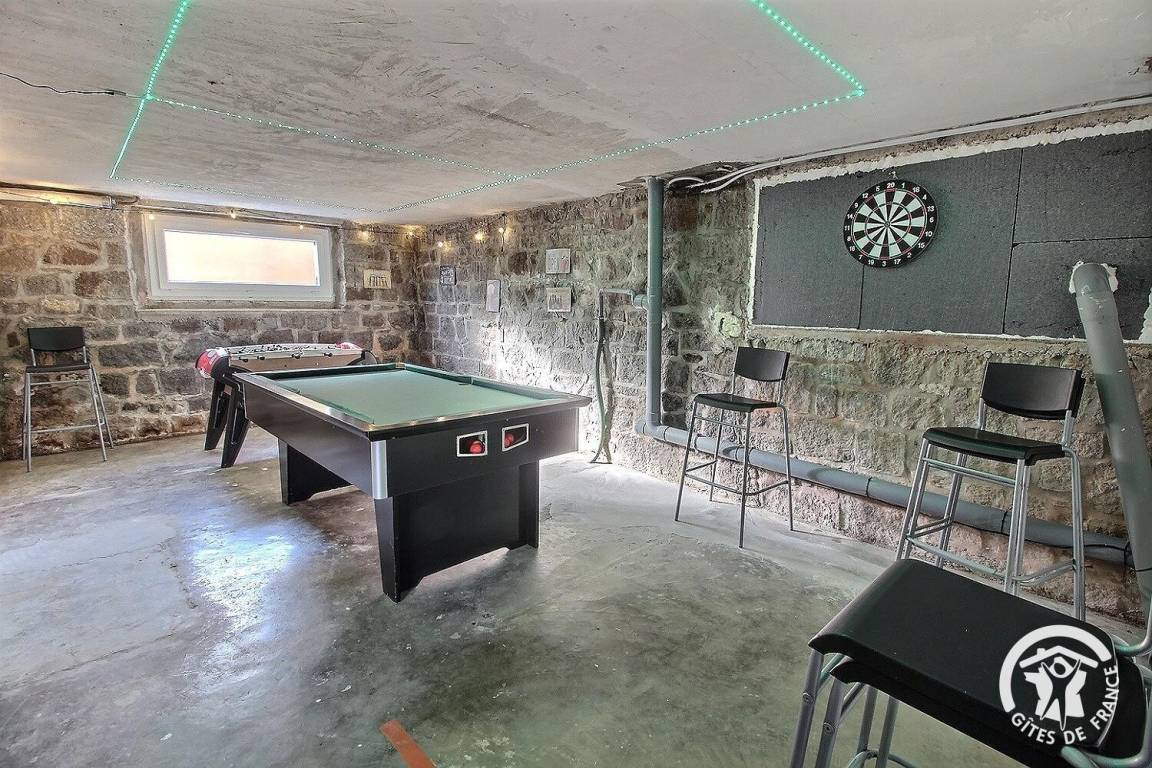 - ein Spielzimmer mit Tischfußball, Billard und Dartscheibe,