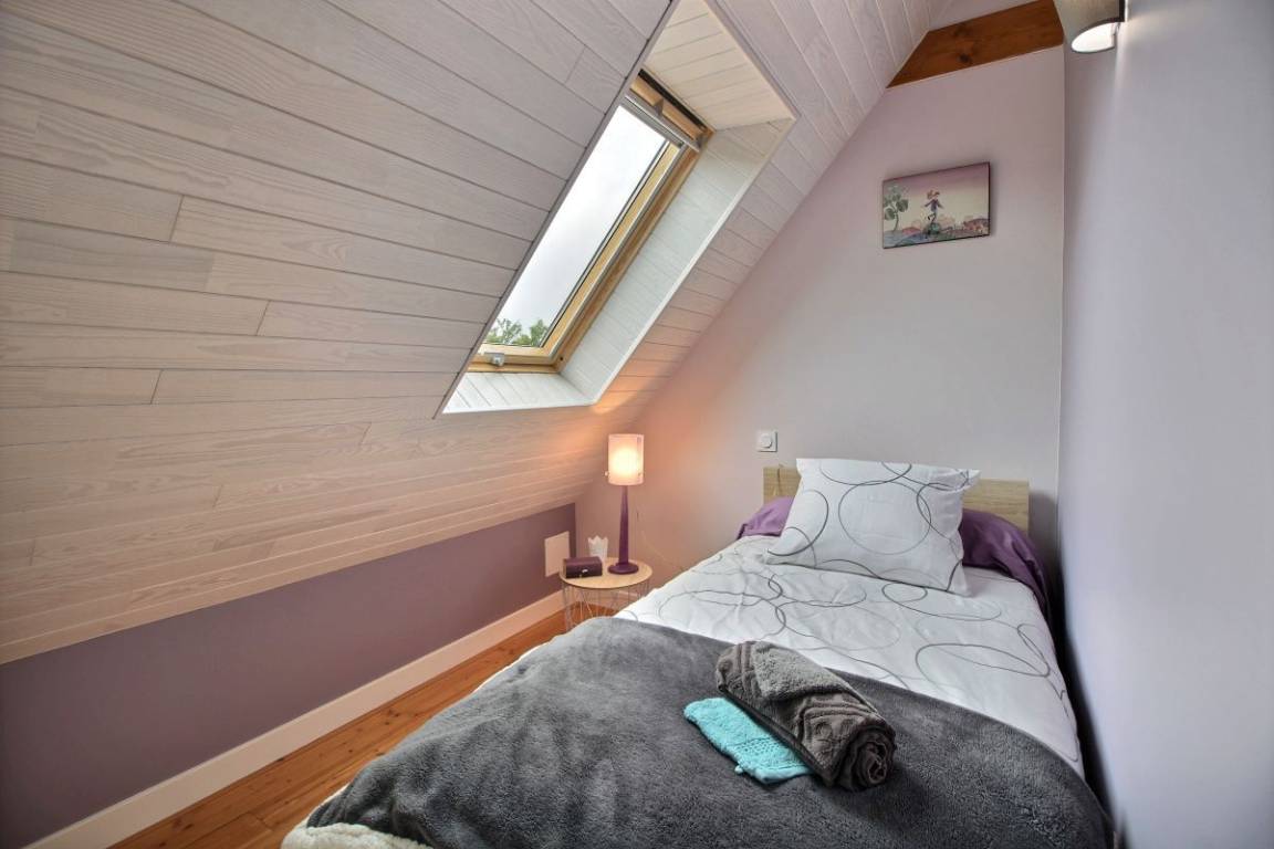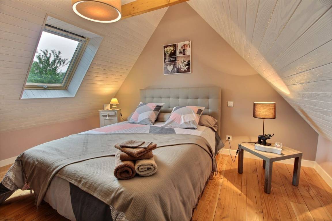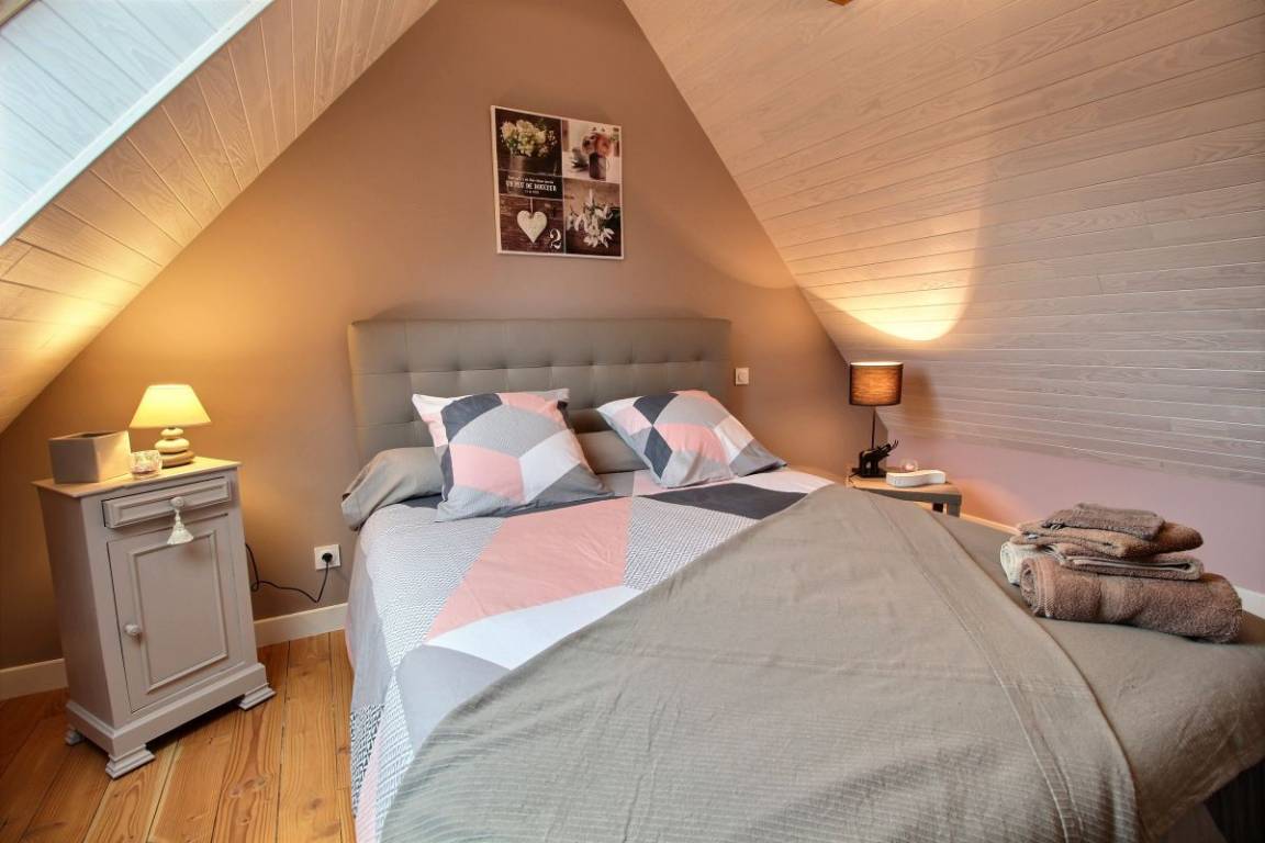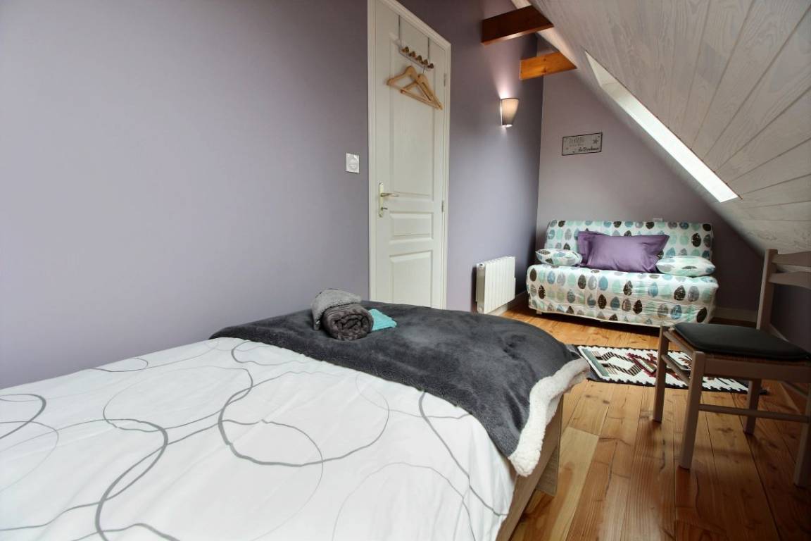 Ihre Ferienwohnung umfasst im Erdgeschoss: eine voll ausgestattete, zum Esszimmer offene Küche und einen Loungebereich. Der Holzofen, der Ihnen zur Verfügung steht, wärmt dieses geschmackvoll eingerichtete Zimmer. Ein Badezimmer mit Waschbecken, ebenerdiger Dusche, WC ist ebenso vorhanden wie eine große Waschküche. Im Obergeschoss führt eine schöne Treppe zu einem Bibliotheksbereich und einer Toilette auf dem Treppenabsatz. Der Schlafbereich besteht aus zwei Schlafzimmern voller Charme unter Verkleidungen und Fußböden. Ein erstes Schlafzimmer (1 Doppelbett 160x200) bietet die Möglichkeit ein Kinderbett hinzuzufügen. Ein zweites Schlafzimmer hat ein Einzelbett (90x190) und ein Schlafsofa (140x200). Draußen erwartet Sie die zum Entspannen eingerichtete Terrasse und der hübsch angelegte Garten von 330 m², um die Landschaft und das Zwitschern der Vögel zu genießen.