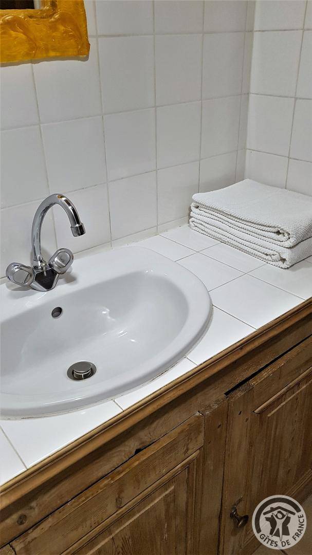 „Un peu vétuste (armoires) manque de rangement dans la salle de baincouverts à compléter: Couteaux et petites cuillères“