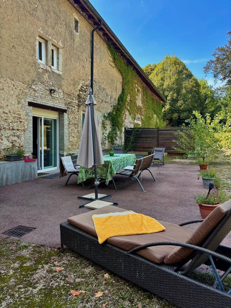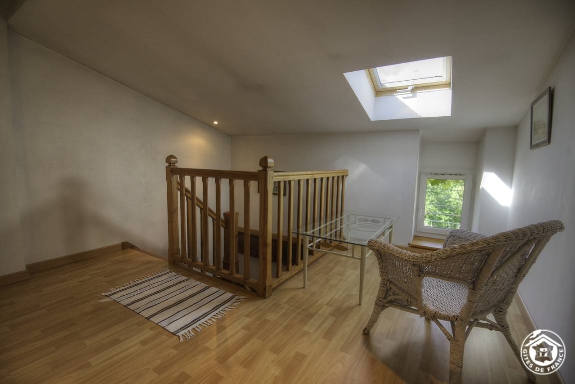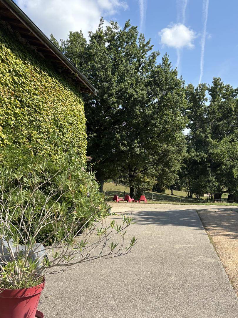 Im Herzen des Departements, nahe dem Ufer des Flusses Ain, in einem großen Steingebäude, umgeben von einem großen bewaldeten Park, bietet diese 120 m² große Gîte, die an das Zweithaus der Familie angrenzt, einen atemberaubenden Blick auf die Berge des Revermont.