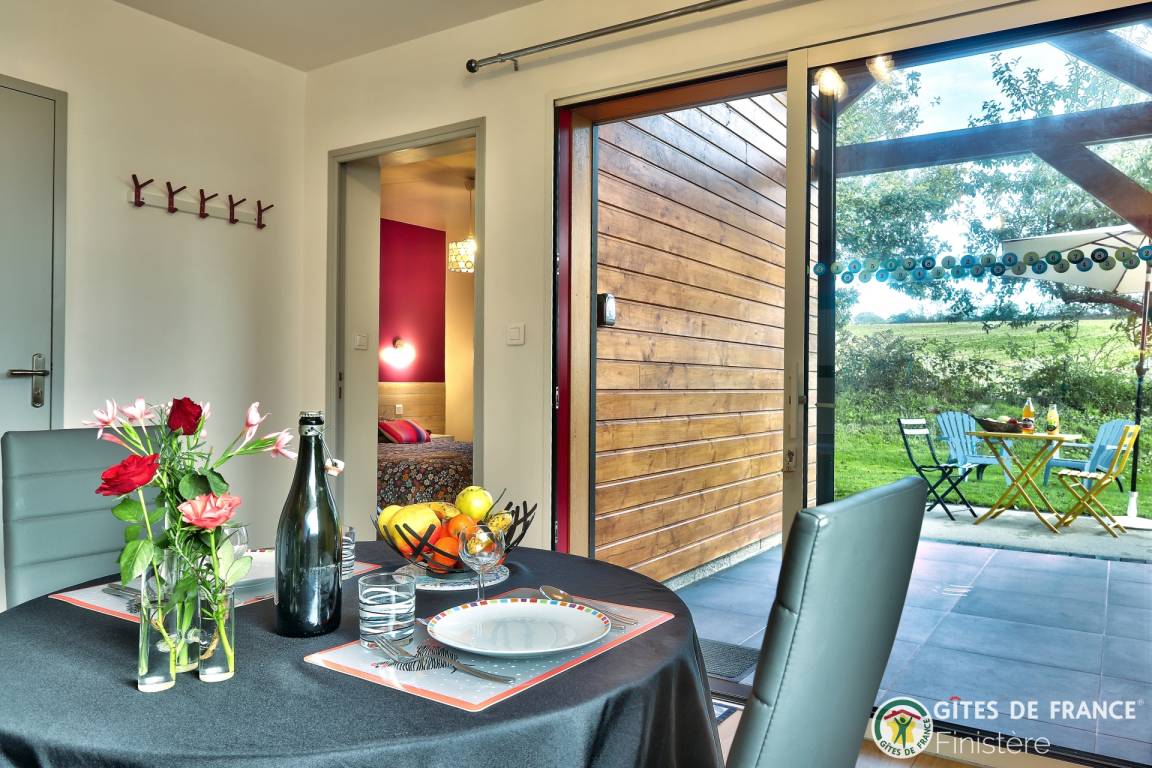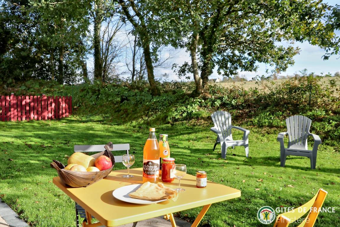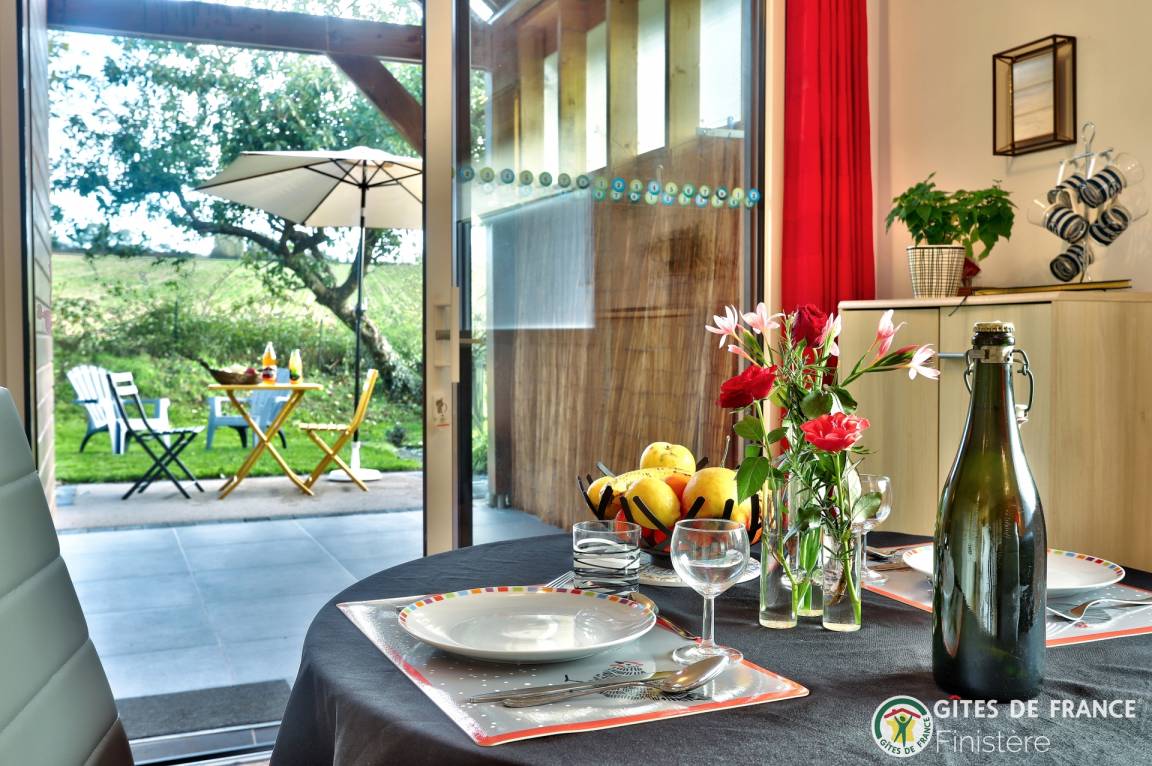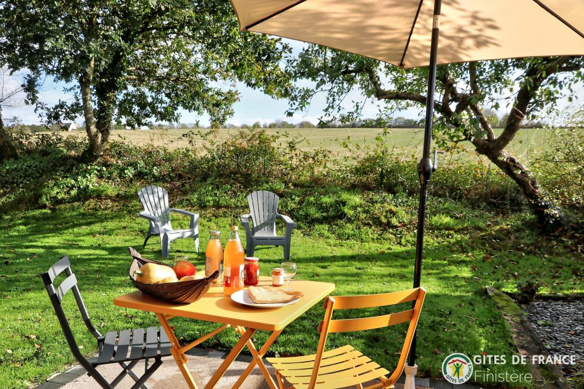 „Gite décoré avec goût. Au calme avec vue sur les champs. Idéalement situé pour visiter les nombreux sites du Finistère. A quelques kilomètres de la mer.“