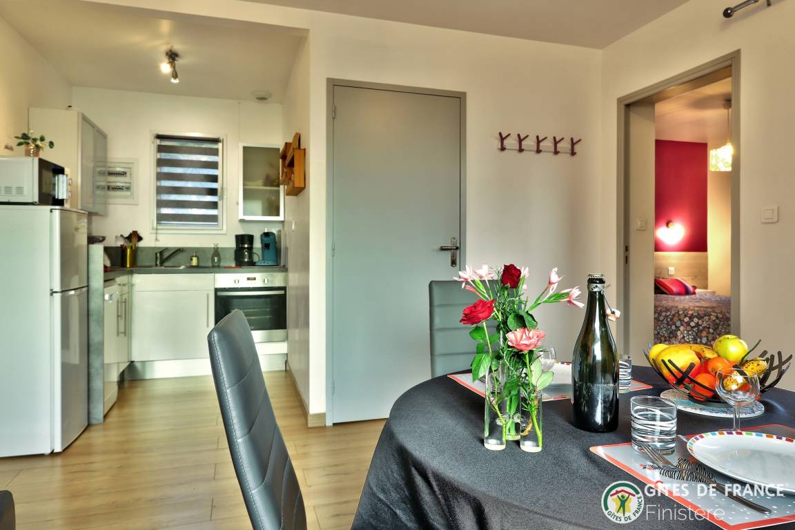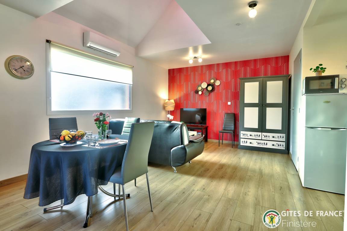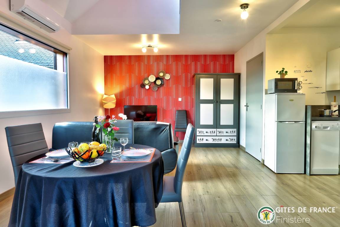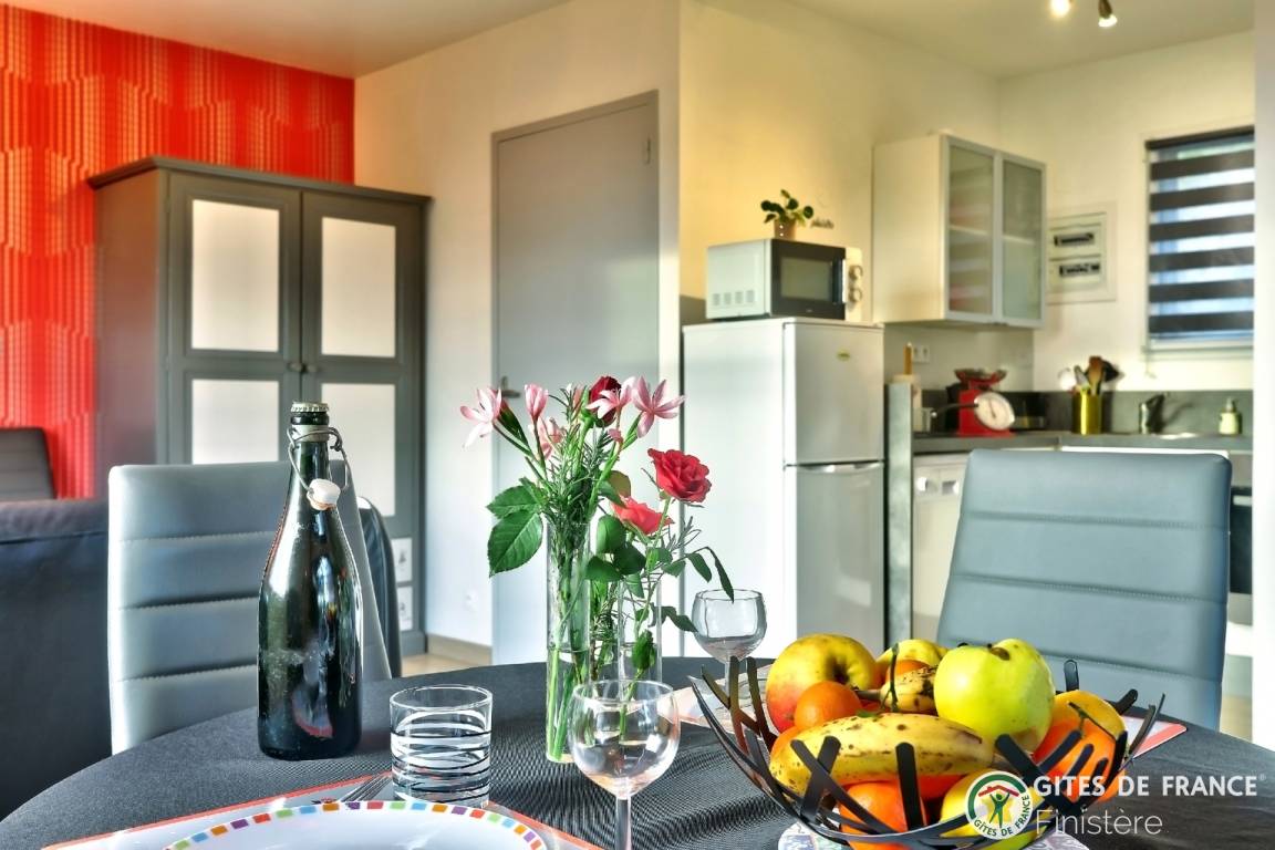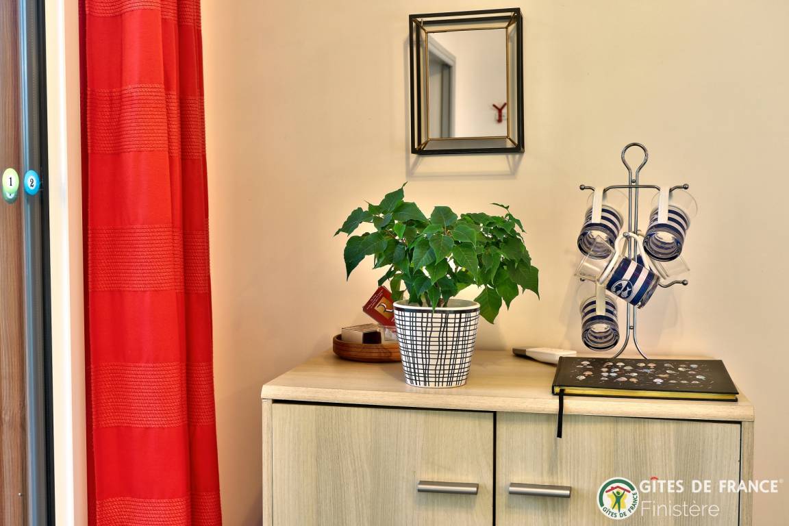 „Gite décoré avec goût. Au calme avec vue sur les champs. Idéalement situé pour visiter les nombreux sites du Finistère. A quelques kilomètres de la mer.“