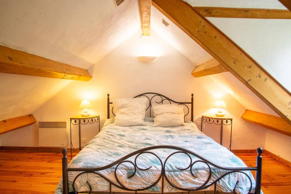„: Calme et beauté des paysages location bien équipée-: Chambre mansardée avec poutres apparentes fort dangereuses au-dessus du lit- chemin d'accès difficile qui n'avait pas été dégagé pour notre arrivée-aucune vue sur l'extérieur“