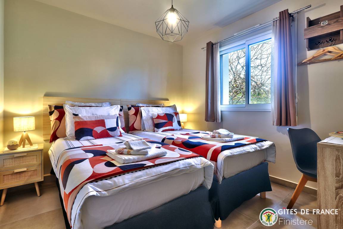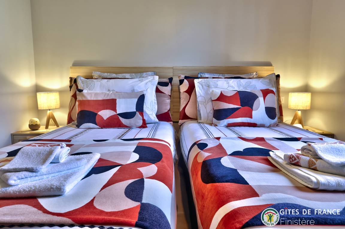 „Nous avons passé une agréable semaine à Ty Queffen où tout était réuni pour que notre séjour se passe au mieux. Le gîte est très bien agencé, décoré et équipé (mieux que chez nous, c'est dire!). La propreté est irréprochable, tout semble neuf! A cela s'ajoute une literie de qualité, une localisation bien située dans un environnement calme. Mention spéciale pour les propriétaires à la fois très discrets, serviables et accueillants: Beaucoup de produits locaux à notre disposition (et pas que: épicerie, bouquet de fleurs etc..), lit abaissé, chaise haute et réducteurs de toilettes pour notre fille de 2 ans. Bref, on est sur du haut de gamme, digne d'un très bon hôtel. Merci Abel pour cette prestation de qualité.“